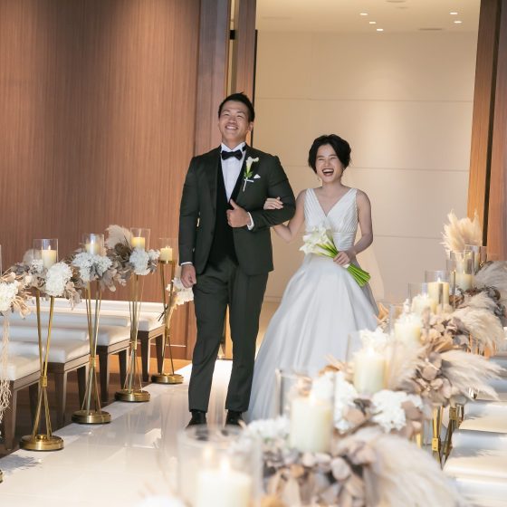進行におきましてもゲストの方々との時間を多く取りたいと考えていた為、お色直しの回数を一回にしたり、写真を撮るタイミングを司会の方に指示して頂いたりしたお陰で皆さんと同じ時間を共有することが出来ました。