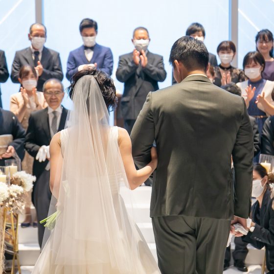 コロナ禍の影響により挙式の約二週間前に親族婚に変更となりました。そんな中で迎えた当日。正直な所、当日を迎えるまでは不安な気持ちもありました。しかしながら始まってしまえば一瞬の出来事だったかのように、あっという間に時間が過ぎていき一生忘れることが出来ない幸せな時間を過ごさせて頂きました。司会者の方の的確な進行やフォロー。控え室でのヘアセットや着付をして下さった美容スタッフの皆さんの気さくな雰囲気作り。細部に渡り心遣いを感じることができ、心の底からベイスイート桜島テラスで挙式ができて幸せだったと言うことが出来ます。急な変更だったにも関わらす、丁寧な対応をして頂いた入江さん。スタッフの皆さん。私達以外にも数多くのゲストの方を抱え、想像以上に大変な日々だったと思います。そんな中でも、私達のみならずゲストの方々への配慮も大切にして頂き、ありがとうございました。その時の心遣いは忘れません。お陰様でゲストの方にも満足して頂くことが出来ました。また、スタッフさんの対応力の高さを賞賛する言葉を数多く頂き、私達も大満足な一日となりました。二年間と長期にわたる打ち合わせだった為、今はそれがなくなり寂しい気持ちもありますが、またお会いできる日を楽しみにしております。生まれ変わってもベイスイート桜島テラスで挙式したいと思えるほどの会場、スタッフさんでした。本当にありがとうございました。