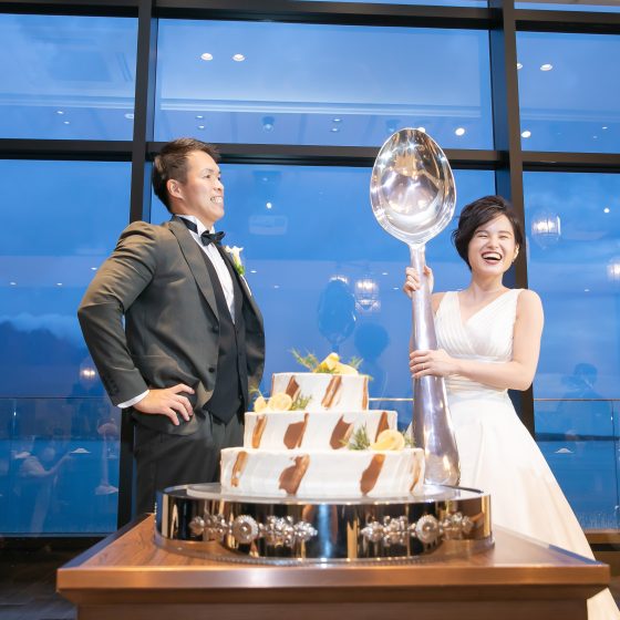 私達が一番こだわったポイントはゲストへの配慮でした。その中で料理や手作り進行等、私たちらしさが出せるように工夫致しました。式場見学の際、料理を試食させて頂き、大変美味しかった為、是非ゲストの方にも満足して頂きたいとの思いが強くありました。特に茶碗蒸しは夫婦ともに大満足でした。高橋料理長と打ち合わせを重ねて、お出しした料理はゲストの方からも大好評で、『普段は全部食べないのに今日は全部食べた』『今までで一番美味しかった』と言って頂くことが出来ました。