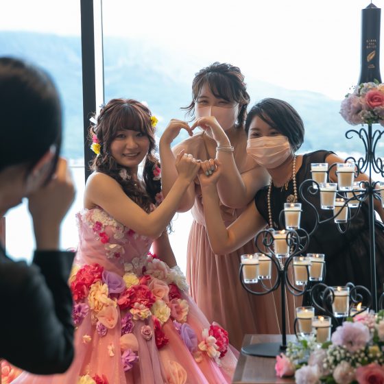 当日は杉田さんをはじめ、進行のスタッフさんやメイク・料理・映像関係の方など多数のスタッフさんに支えられ素敵な式を挙げることができました。