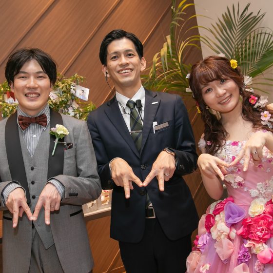 当日は杉田さんをはじめ、進行のスタッフさんやメイク・料理・映像関係の方など多数のスタッフさんに支えられ素敵な式を挙げることができました。