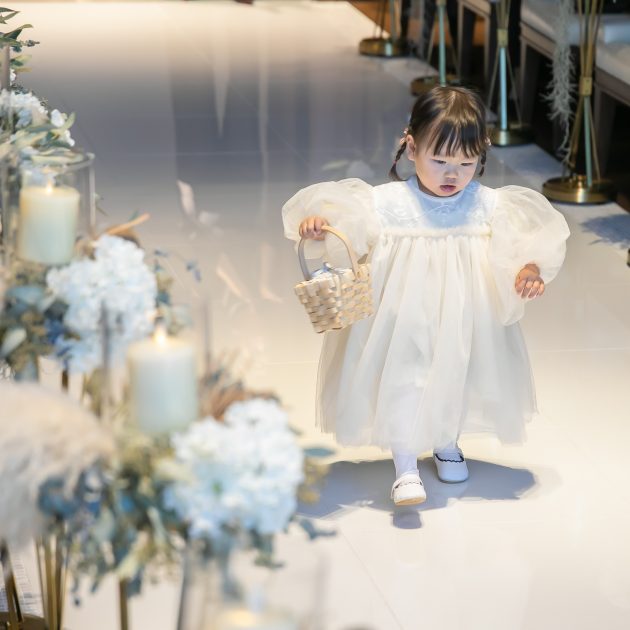 当日は、挙式の入場から披露宴の結びまで緊張しつつも、とても楽しく過ごすことができました。1歳半の娘の行動が予測できなかったため、ぶっつけ本番で頑張るしかないと思っていたのですが、両親の心配をよそに、堂々とリングガールとして歩き、終始落ち着いて1日を過ごしました。娘の成長を最大に見た1日となり、本番に強い娘と、本番に弱い新郎の姿が浮き彫りとなった瞬間でもありました。(笑)