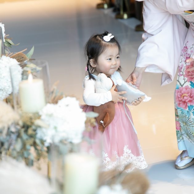 披露宴中はゲストの皆さんと一緒にいれる時間を長く取りたかった為にお色直しを1回、そして初めましての方々も多かった為にフォトラウンドを計画しました。おかげさまで沢山の方との写真を残すことができ、大変満足しています。