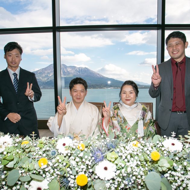 チャペル及び披露宴会場からのロケーションは大変素晴らしく、宮崎県出身の新婦が鹿児島の象徴である桜島が