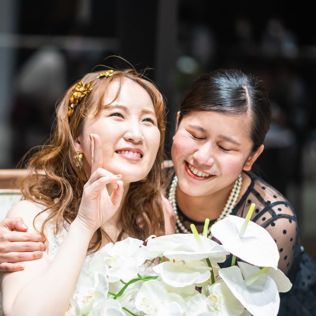 正直、式が始まる直前はゲストのみなさんの前に出て行くのがとても恥ずかしかったのですが、始まってしまえばあっという間に時間が過ぎていき、大好きな家族や親族、友人のみんなに会えて、たくさん写真も撮ることができ、ひたすら楽しかったです!