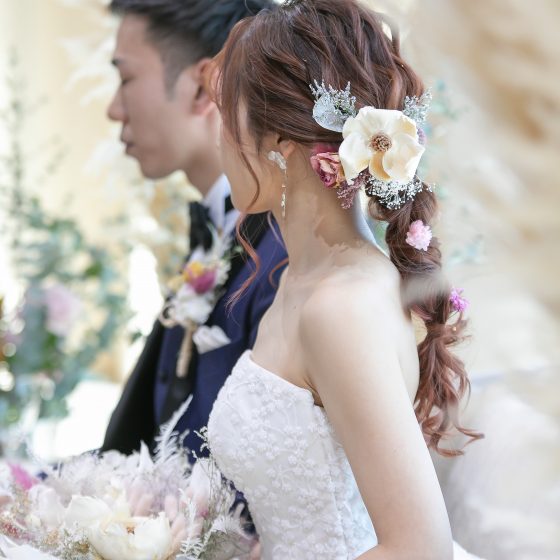 準備期間中はコロナの感染者数が多い状況が続き延期を考えましたが、プランナーの西さん、話を聞いてくださった岡本さん、他にも私たちの式に関わってくださったスタッフの方々の言葉に背中を押された事と、11月は幸いにもコロナ感染者数0人の日が続いていたので、予定通り結婚式を執り行うことができました。