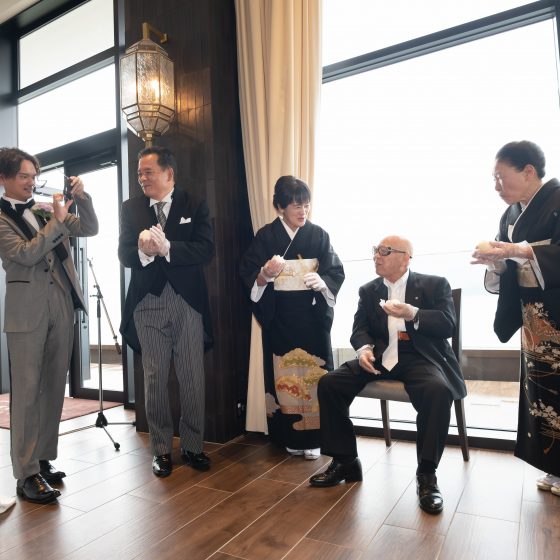 ケーキバイトは、ウェディングケーキではなくお結びセレモニーをしました!お結びセレモニーは初めて見た!とゲストの方々からたくさん言ってもらい、わたしたちもお気に入りの演出でした!ケーキの代わりに用意したデザートビュッフェもとても喜んでもらえて嬉しかったです。