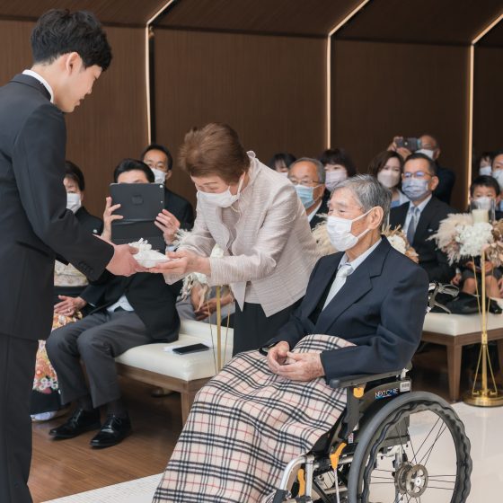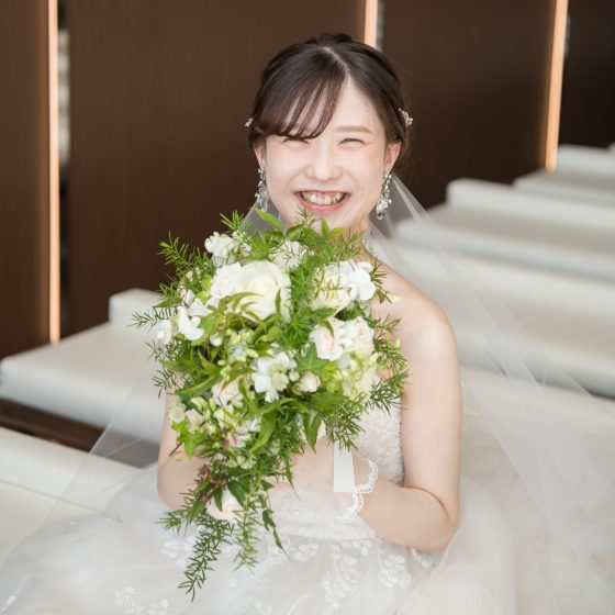 朝から緊張していましたが、担当プランナーの足立さんの「今日は楽しみましょうね」の一言といつもの明るい笑顔でとてもリラックスできました。いざ本番が始まるとあっという間でしたが、ゲストのみなさんと写真を撮ったり歓談したりと幸せいっぱいな時間を過ごすことができました。コロナ禍で会えていなかったゲストの方々とも久しぶりに再会できたので嬉しかったです。