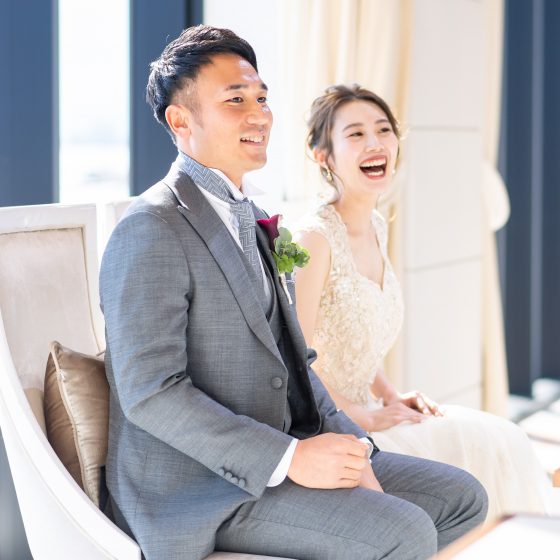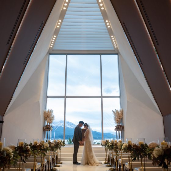 約1年間の準備期間を経ての結婚式でしたが、あっという間でした。夫婦ともに千葉で生活しているので打ち合わせは、全てオンラインでの打ち合わせ。担当の西さんにはたくさん迷惑をかけたと思います。対面ではない難しさはあったかもしれませんが、すべての打ち合わせで優しさを全面に振りまきながら親身になって話を聞いてくれました。当日、実際にお会いするのは約1年ぶりぐらいでしたがキラキラと輝く笑顔で優しく結びまでエスコートしてくれました。本当に心強かったです。西さんをはじめ会場スタッフの皆さんのおかげで素晴らしい式にできたと本当に思います。心からの感謝を伝えたいです。当日は前日までの不安定な天気のせいで無事にゲストの方々来て下さるのか、そして無事に結婚式を挙げることができるかととても不安でしたが、その不安もかき消されるほどの素晴らしい天気、そして降った雪が桜島に残り、鹿児島県民でも滅多に見ることのできない雪化粧をした桜島となっていて本当にレアな絶景が広がる結婚式当日となりました。結婚式が結ぶと、久々に会うことのできた恩人、友人、家族と来てくださった方々のみんなの顔がとびっきりの笑顔であったこと、それが1番私たちにとって嬉しかったことです。この幸せな日をベイスイートで過ごすことができて悔いなしです!最高の一言!一生の思い出となりました。西さんラブユー。