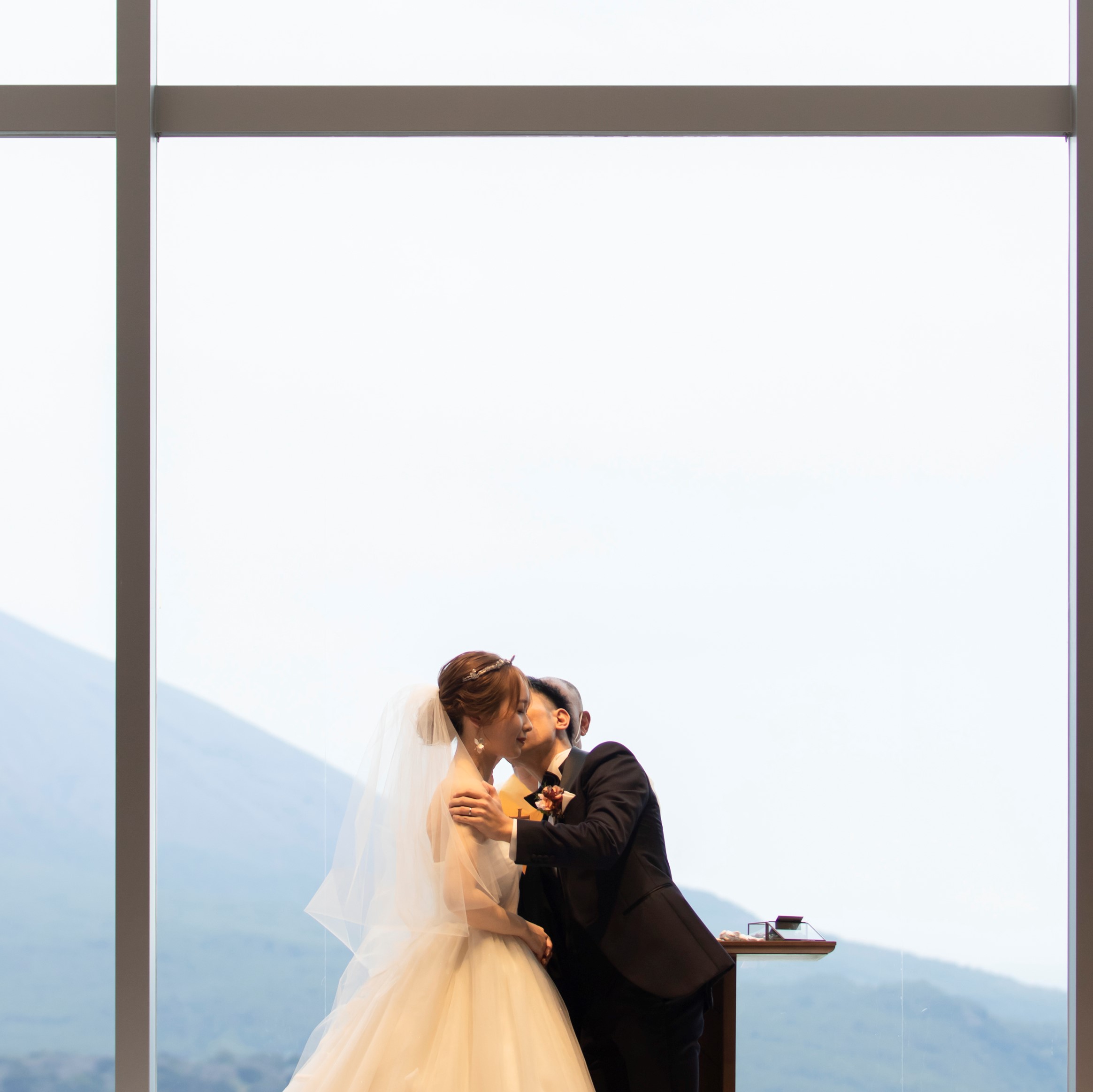 式場を決めた1番の理由は、プランナーの宮本さんです。私たちは、結婚式場を選定するに当たり、当初は色々な式場のフェアに行って比較検討した上で決めるつもりでいました。そのような計画の中で、1番初めに参加したフェアが、ザ・ベイスイート桜島テラスさんでした。その時に、プランナーの宮本さんが私たちの担当で、式場の魅力を最大限に教えてくださりました。また、初めてのフェアで右も左も分からない私たちに対して、いわゆる営業トークのような耳触りのいい話だけではなく、結婚式にかかる現実的な金額や負担など、本音ベースで話をしてくださり、その時に、人間としてとても信頼できると感じました。「この人に担当してほしい」と、私たち夫婦の強引な思いを受け止め、そのままプランナーとして担当していただけることになり、その場で即決しました。