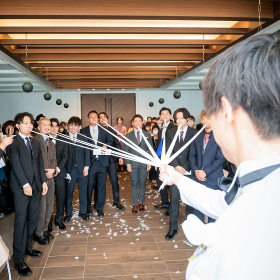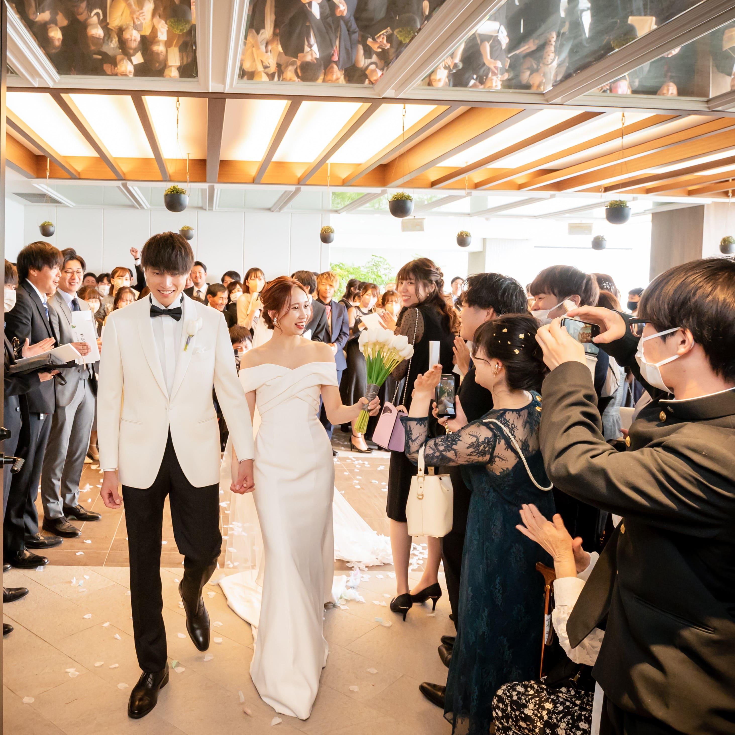 そしてチャペルも予想以上に人が来ていて驚いてしまってリハーサルで覚えたことがぶっ飛んでお父さんお母さんとの入場はバラバラで礼したのも良い思い出です。新郎は終始ガチガチなのも良い思い出です。なんとかチャペルが終わりガーデンで想像以上のシャボン玉と花びらで入場する側もびっくりしました!とても嬉しかったです!新郎のゴムパッチンにも私たちの大好きなスタッフさんを混じれてパッチンできたので私たちは大満足です⭐︎