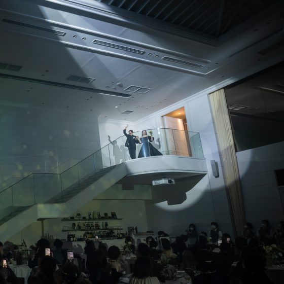 最初からこの会場にビビっときていて、前から式場とかを調べるのが好きでずっと気になっていてプロジェクションマッピングなどもアトラクションなみの大きさで映し出されて料理も美味しいと評判良くて、実際に食べたら美味しくて、何より担当だったブライダルスタッフの方がいい人すぎてその周りもとてもいいスタッフしかいなくて、ここで挙げたいと確信に繋がりました。