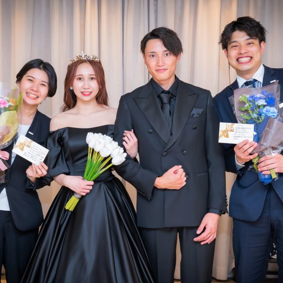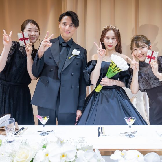 そして何よりこだわったのはカラードレスです。提携のドレスショップさんに自分が来たい色がなく色んなところを探してとても理想的な黒のドレスを見つけることができ、持ち込みを相談して持ち込めることになりとても嬉しかったです。ドレスに合わせてタキシードも黒で揃え、真っ白から真逆の真っ黒を着ることができて大満足でした!そして最後にスカイランタンを式場さんで初めてのことが出来てまた準備もスタッフさんが色々してくださりとても理想的なスカイランタンができました!