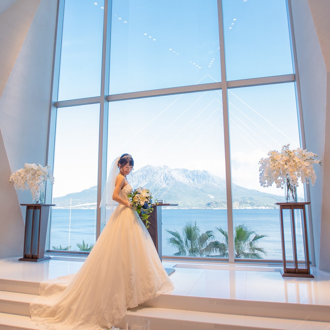 会場から一望できる、美しい桜島の景色を自分の目で見た時、これまでの鹿児島で過ごした思い出が蘇り、この式場に決定してよかったな、と心から思えた瞬間でもありました。