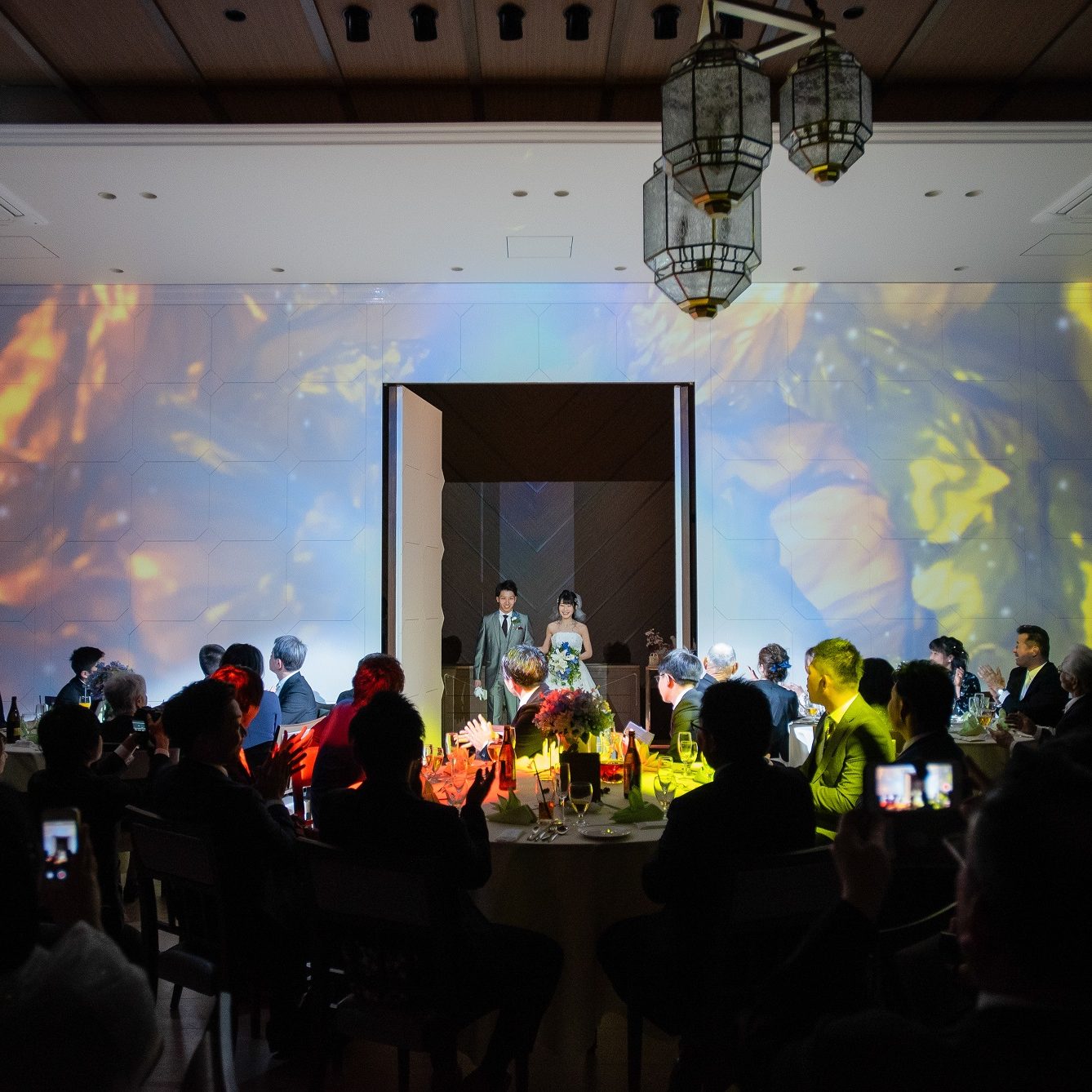 サプライズインタビューや、ケーキ入刀、中座はおばあちゃんにエスコートしてもらったり、どのシーンもとっても楽しく、今でも鮮明に覚えています。一番驚いたのは、ふたりの同じ地元の同級生たちがたくさんの人たちに声をかけてくれて、作ってくれたサプライズムービー。みんなからの温かいメッセージに感動しましたし、笑えるところもあって面白かったです^^