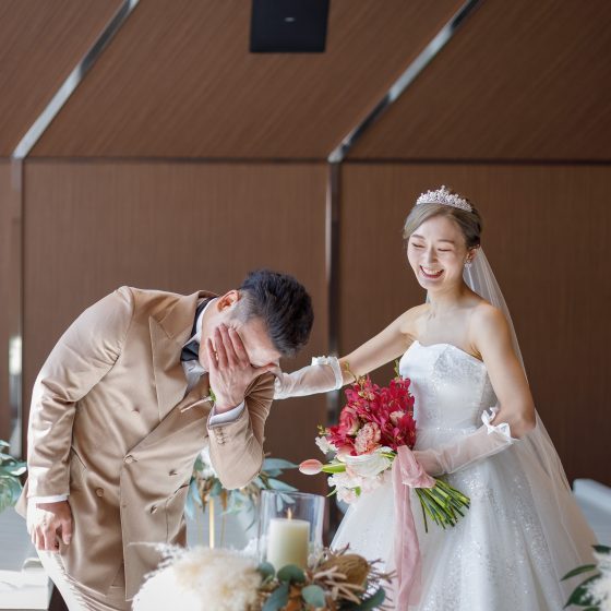 おかげでかしこまった式にならず、会場中笑いが溢れた式となりました。和やかな雰囲気にもなったので、新婦も入場しやすかったです。