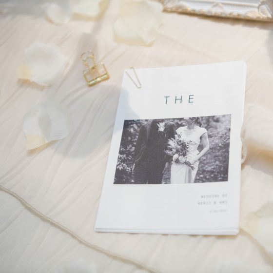 2人でたくさん話し合い、結婚証明書、ゴムパッチン、ドレス当てクイズ、万歩計ゲームなど参列してくださる方が楽しんで帰ってくれることを用意しました。打ち合わせの時から、担当の西村さんが親身になって、相談に乗ってくださり、私達も楽しみながら準備をすることが出来ました。