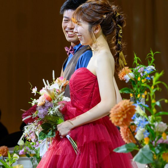 あっという間の1日でした。え?もうおわっちゃった?!え?!という感じで、楽しすぎて体感5分で終わりました!笑 ずっと笑っていたので次の日は顔が筋肉痛になりました。準備9割本番1割だと思いました。久しぶりに会えた友人や先輩、親戚のゲストに大変喜んで頂く事が出来て、新郎新婦共に心の底から嬉しかったです。貰った映像を見ると当日の会場の盛り上がりが分かり、嬉しかったです笑