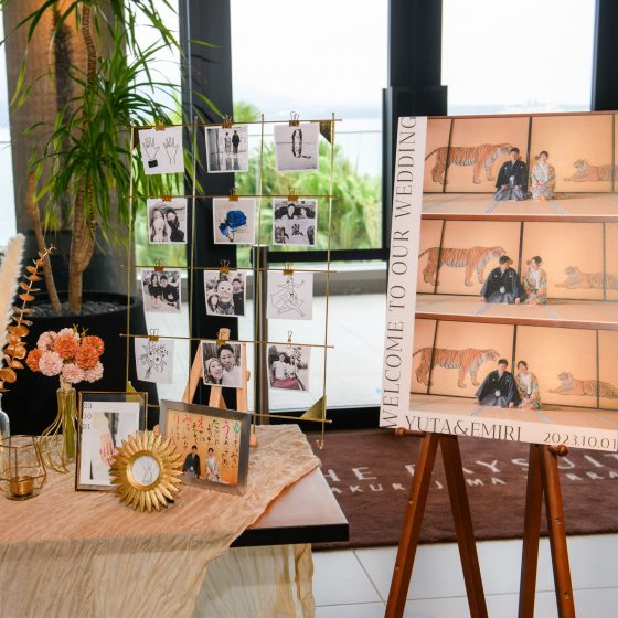 県外からのゲストが多く、鹿児島に来た事がない人達も多かったので鹿児島の象徴である桜島が1番綺麗に見える式場を探していました。色々な式場を見学してここは綺麗だけど桜島が綺麗に見えない、ここは自分達の理想とは少し違う等と他の式場を見て2人がここだと思える式場がなかったのですがベイスイートさんはチャペルも披露宴会場も1番桜島が綺麗に見えて、式場内も私達の好みで2人してここだねって言ってすぐに決まりました。