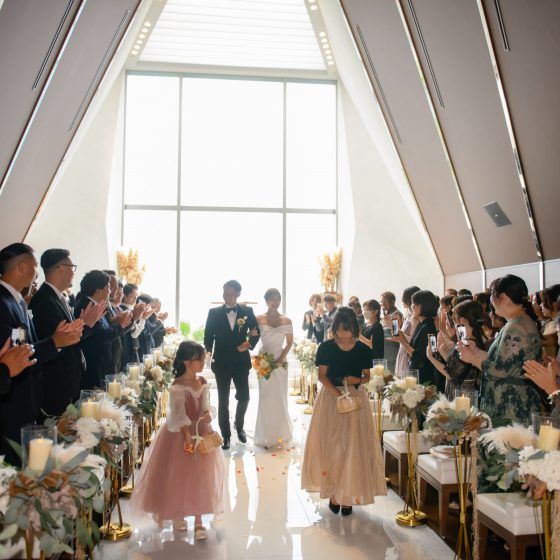 最初は結婚式の主役って緊張するし恥ずかしいし、嫌だなと正直思っていたのですが実際に結婚式を挙げてみると当日はあっという間に始まり、あっという間に結びました。挙式入場時はとても緊張していたけど来てくれたゲストの方々の祝ってくれる顔や、泣いている両親の顔を見ていると段々と緊張もほぐれて、ずっとこの時間が続いて欲しいとすら思っていました。当たり前なのですが、中学や高校での自分の友達が参加してくれて会えた事が嬉しかったです。結婚式を挙げてよかったと心の底から思っています。
