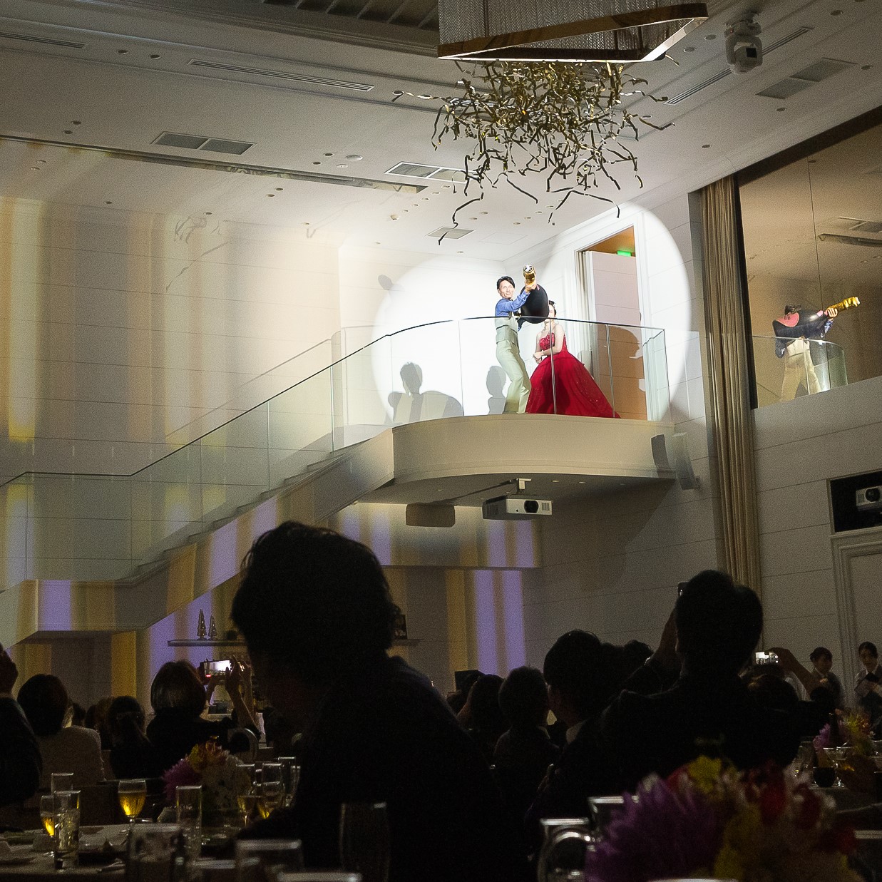 披露宴開始時に大迫力のプロジェクションマッピング、お色直し後に