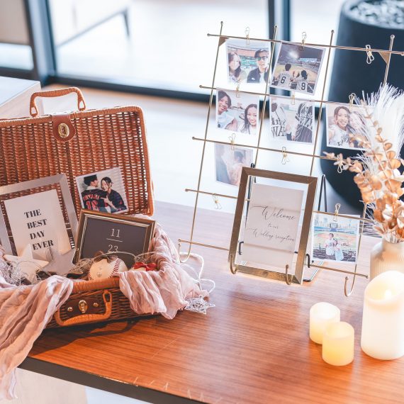 2人の共通である野球をテーマにしていたこともありウェルカムスペースでは大好きな球団のユニフォームにゲストの方にメッセージを書いていただき最後のお見送りの際に着用したり、お色直しの入場でマジックウォールは野球好きが伝わる演出にしていただきとても大満足です。