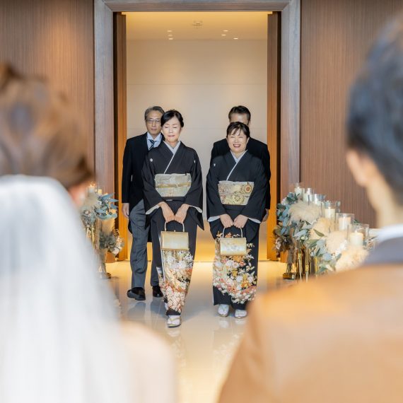 当日は天気にも恵まれ、桜島が綺麗に見えて最高のロケーションでした。11月だったのにも関わらず真夏日となり、チャペルが凄く明るくて綺麗だったので、ここに決めて本当に良かったと思いました。披露宴はテラスからの入場で、カーテンが開いた瞬間、たくさんのゲストの皆さんが笑顔で拍手をしてくれている姿を見て一気に気持ちが昂りました!