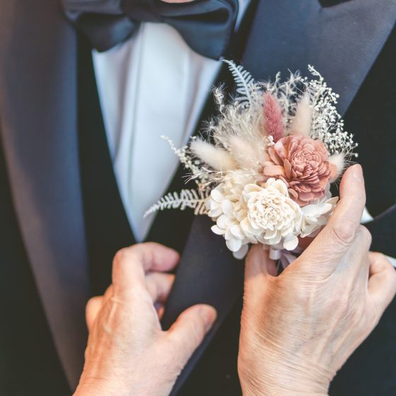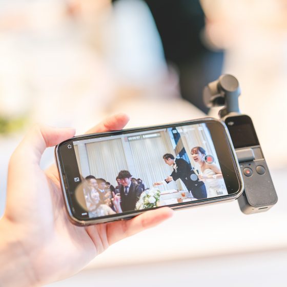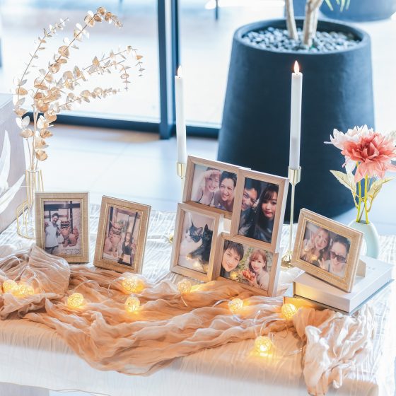 ゲストに楽しんで欲しいという気持ちがあったのでコスメブーケやゴムパッチン、ドレス当てクイズなど喜んでもらえるものを沢山入れました!また、中座では新郎は親友におんぶをしてもらい、新婦はおばあちゃんとお姉ちゃんと退場したいと思っていました!1番こだわった部分ではプロジェクションマッピングです!うちには2匹猫を飼っており、当日は連れて来れないので、どうにかして出演をしてほしかったのでプロジェクションマッピングで登場させました!