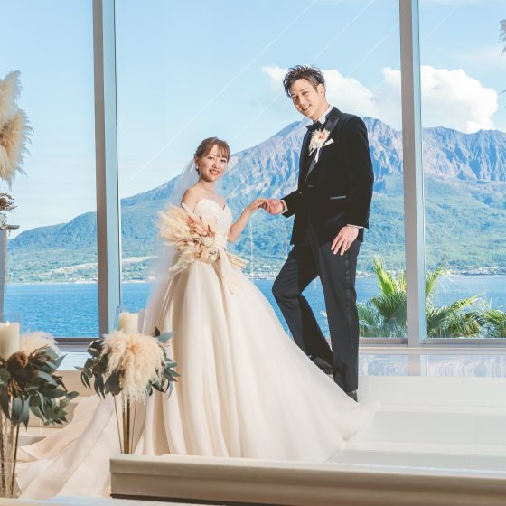 1番はお料理の美味しさでした!茶碗を食べた時の美味しさは今でも忘れられません!他にもお肉だったりトリュフ塩、もう全部が美味しかったです!またロケーションやプロジェクションマッピングの凄さに惹かれ決めました!県外からのゲストも呼びたかったので綺麗な桜島を見て欲しい!と思ったのも1つです!また、チャペルを見た時ここで式を挙げたいと気持ちが高くなり最初に担当してくださった西村さん西さんの丁寧な説明にも感銘を受けたのでTHE BAYSUITE SAKURAJIMA TERRACEに決めました!