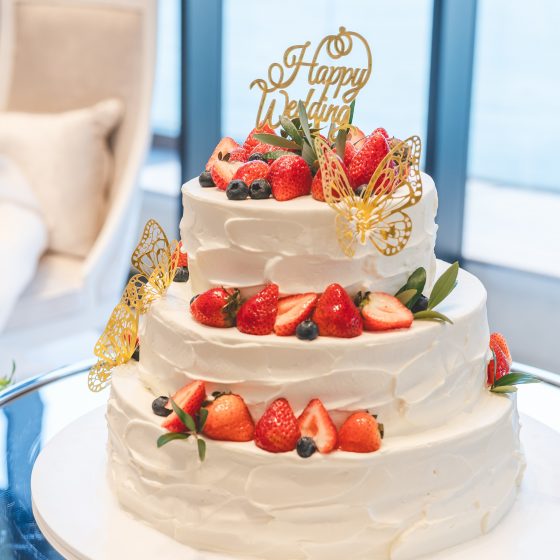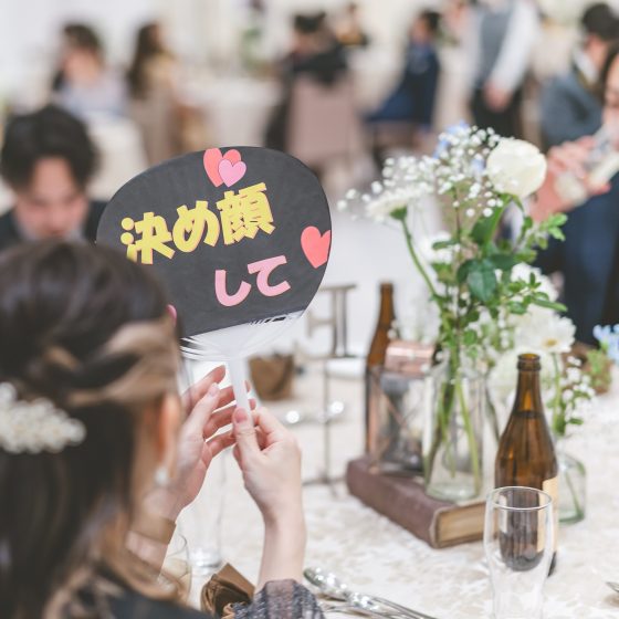 緊張で眠れなく、当日は式場に着くまで実感はなかったのですが、担当の西さんが笑顔で向かい入れてくださり、とても安心したのを覚えてます!また、メイクを担当してくださった方も楽しく会話をしたくださったので緊張がほぐれました!今回の披露宴のテーマがLIVEみたいな結婚式にしたかったので、ゲスト達もうちわを作ってきてくれて盛り上がり楽しい結婚式になりました!プロジェクションマッピングも料理もゲストから好評で本当に素敵な結婚式にでしました!