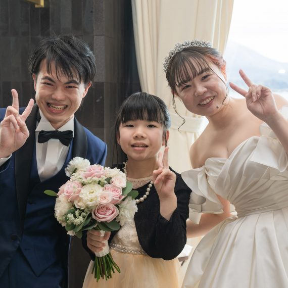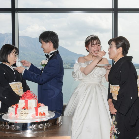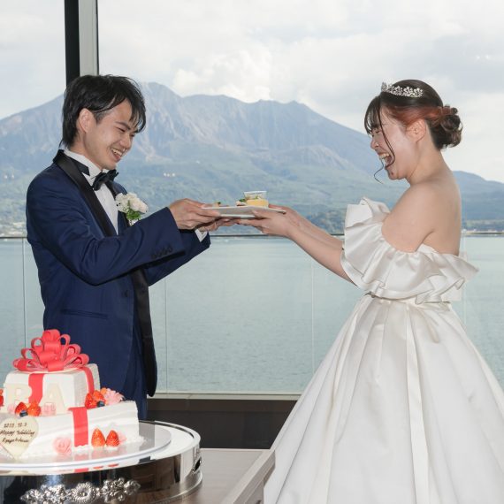 当日の天気が式場を決めた時から心配していましたが、とても良い天気で当日を迎えられてよかったです。チャペルと披露宴会場からの桜島と海をバックにいい写真がたくさん撮る事が出来て本当によかったと思いました。