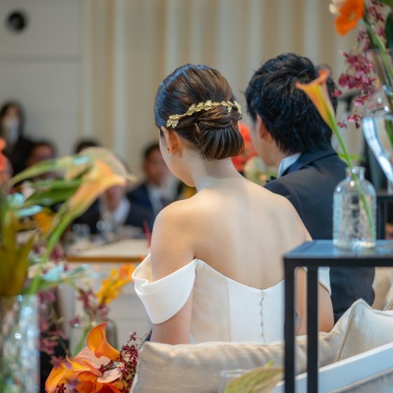 『みんなに感謝の気持ちを伝えたい』という想いで準備を進めました。その中でも、ゲストの方も一緒に楽しめるということにこだわり、クイズ大会をしたり、デザートブッフェをしたりすることで、とても盛り上がることができました。また、衣装やお花、ペーパーアイテム等は、会場の雰囲気にも関わるので、納得いくものを選ぶようにし、統一感が出るようにしました。どれも、『自分たちらしさ』を表現することができ、大変満足しています。