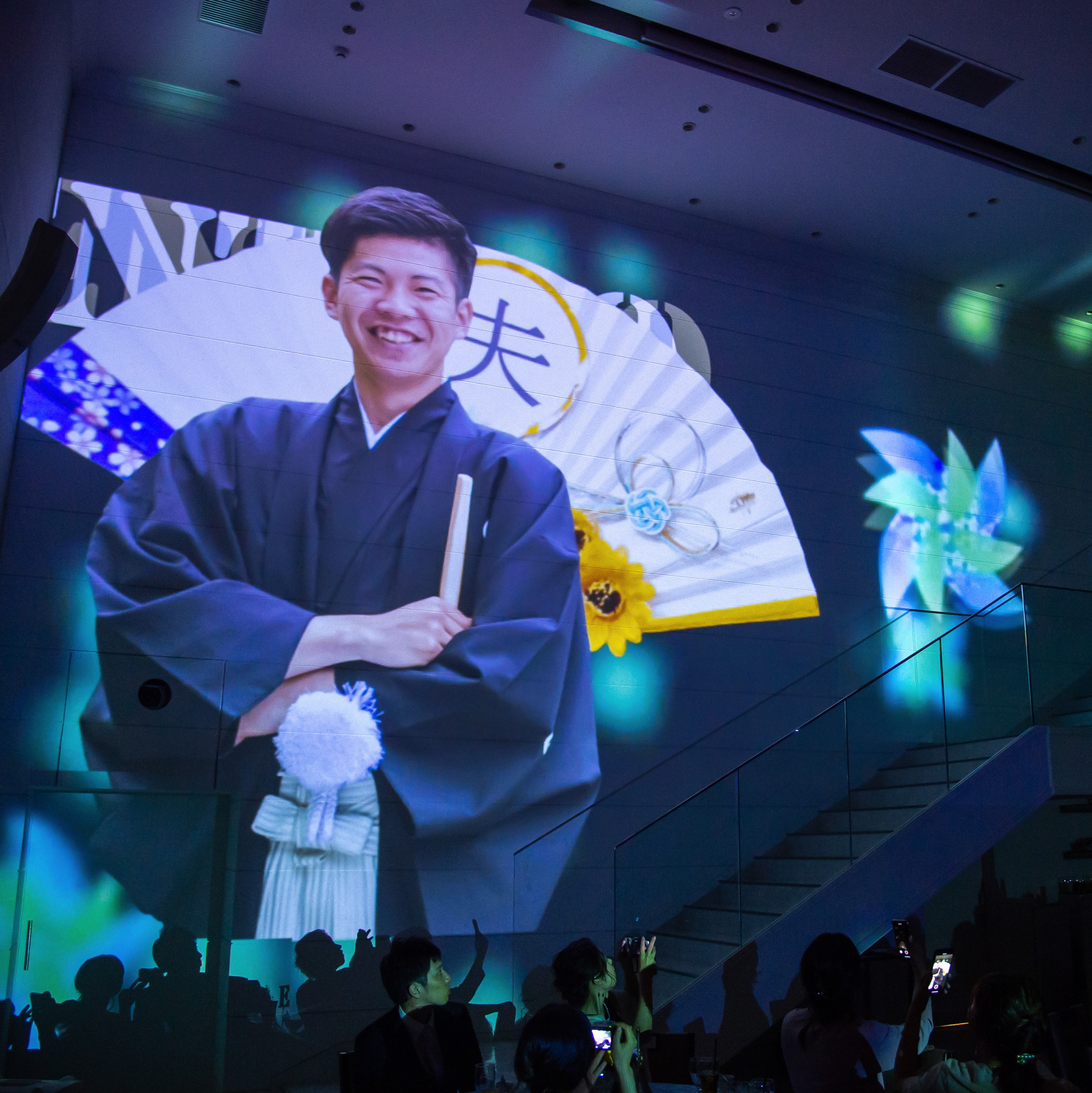 また披露宴入場前のプロジェクションマッピングは映画のキャラクターを