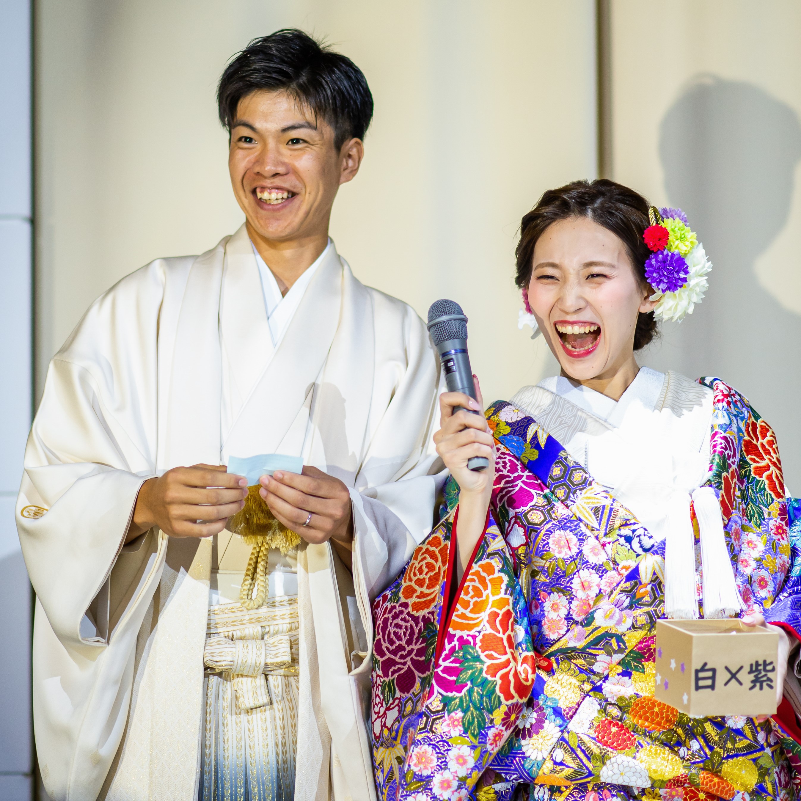 和装の入場後に当たりの投票箱から新郎新婦のゲスト各2名ずつ