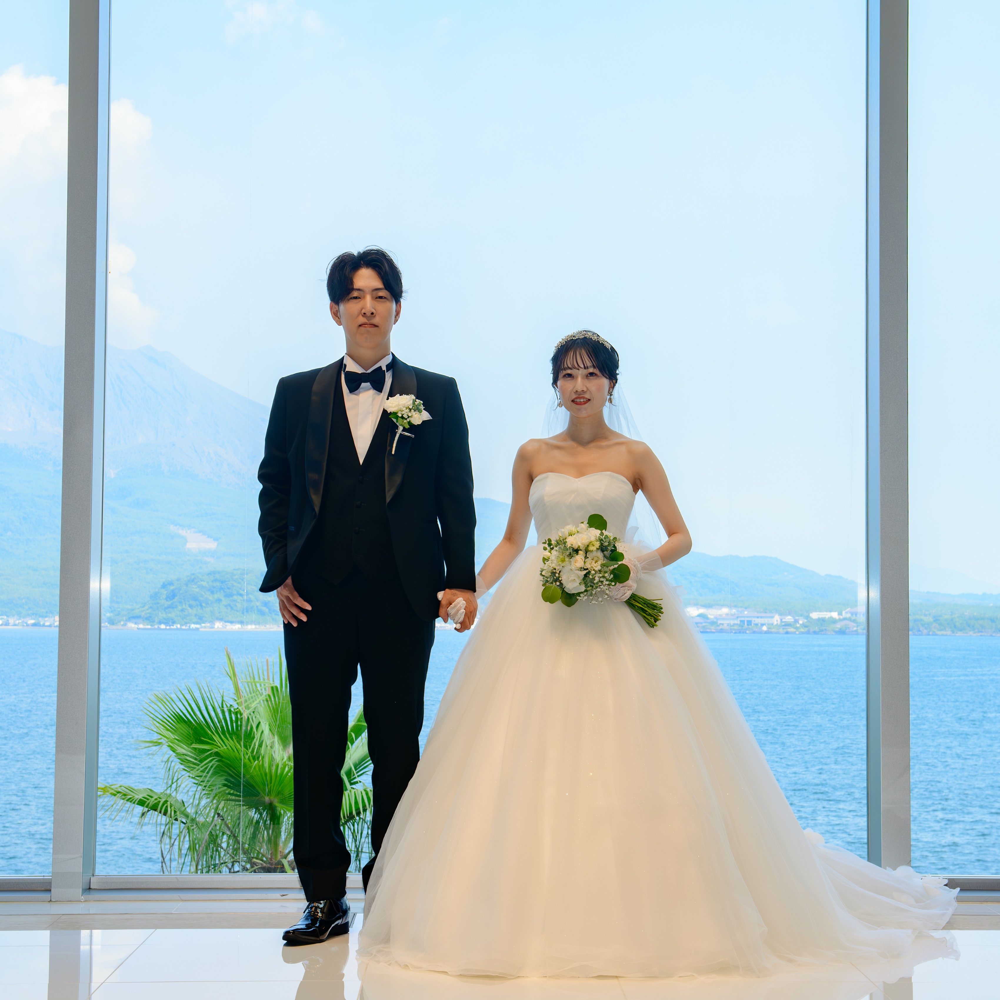 当日は天気にも恵まれ、綺麗に桜島が見える状態で挙式・披露宴と出来たので、抜群のロケーションでできて嬉しかったです。