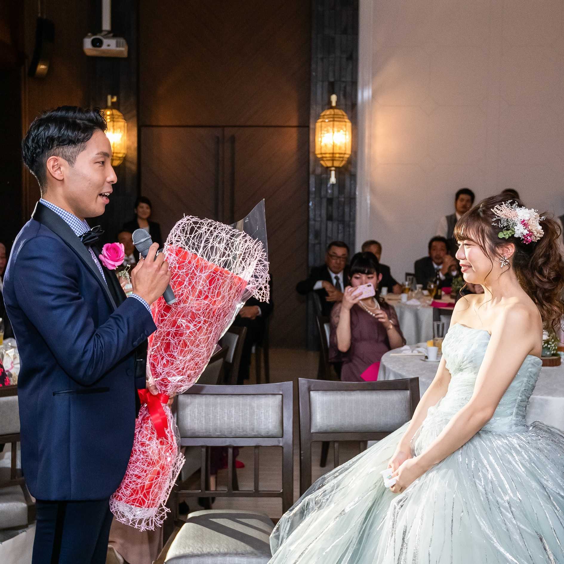 スタッフの方々には新婦が妊娠6ヶ月だった事もあり、披露宴中も水分補給や疲れが無いかなど気遣っていただきました。