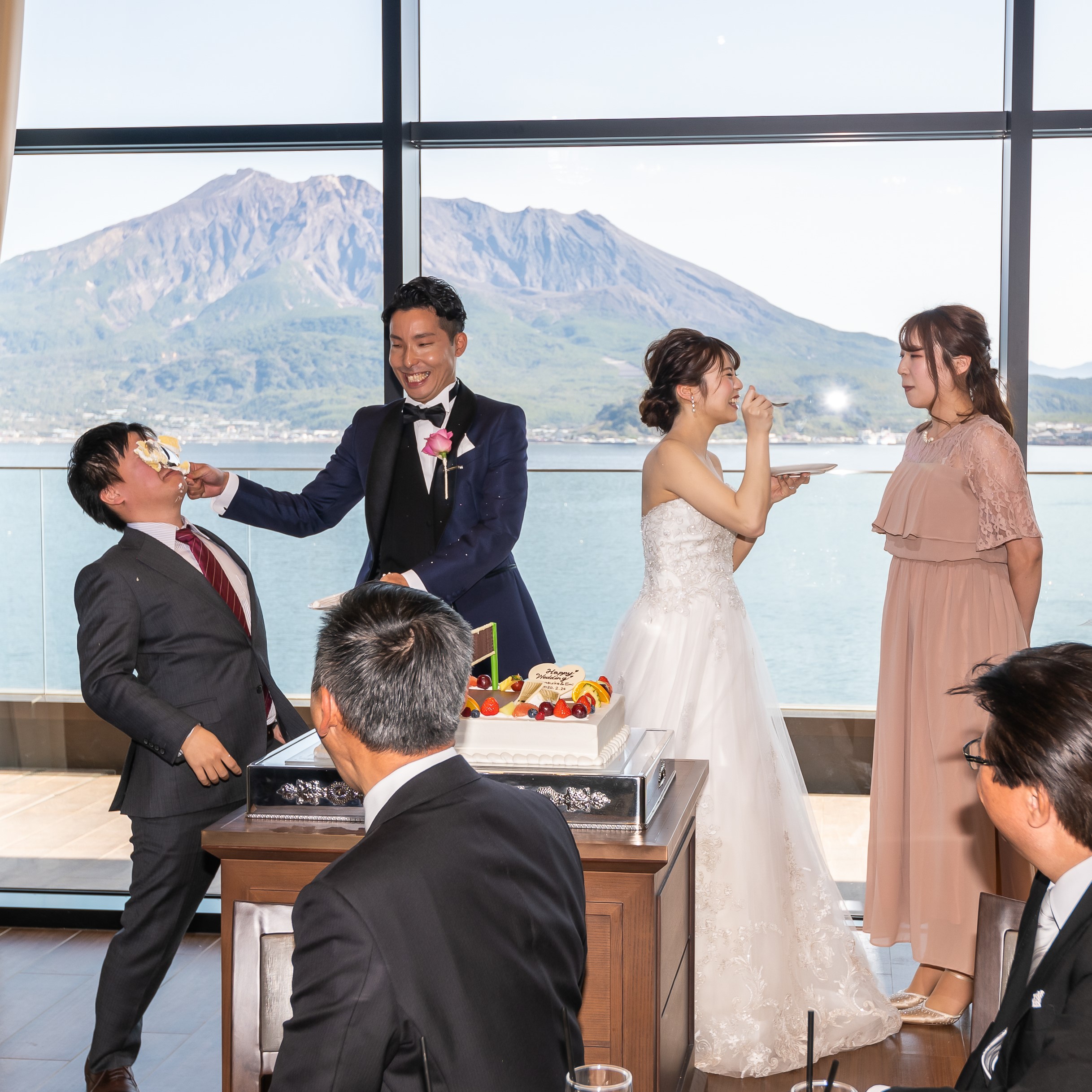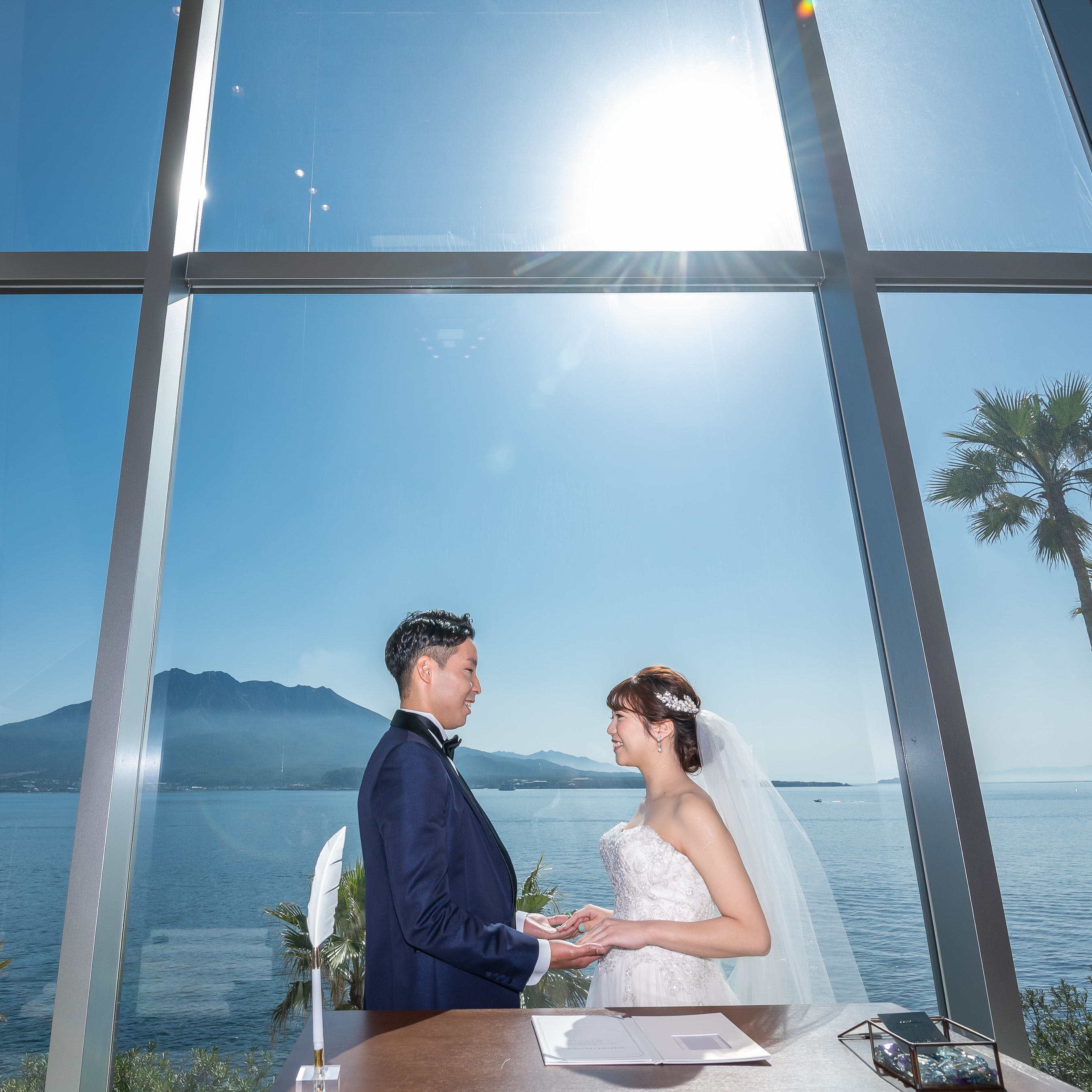 披露宴会場だけでなく、ラウンジ、チャペルどこから見ても鹿児島の象徴桜島が見えるので私たちの生まれ育った鹿児島の魅力を最大限に伝えることができると思いました。