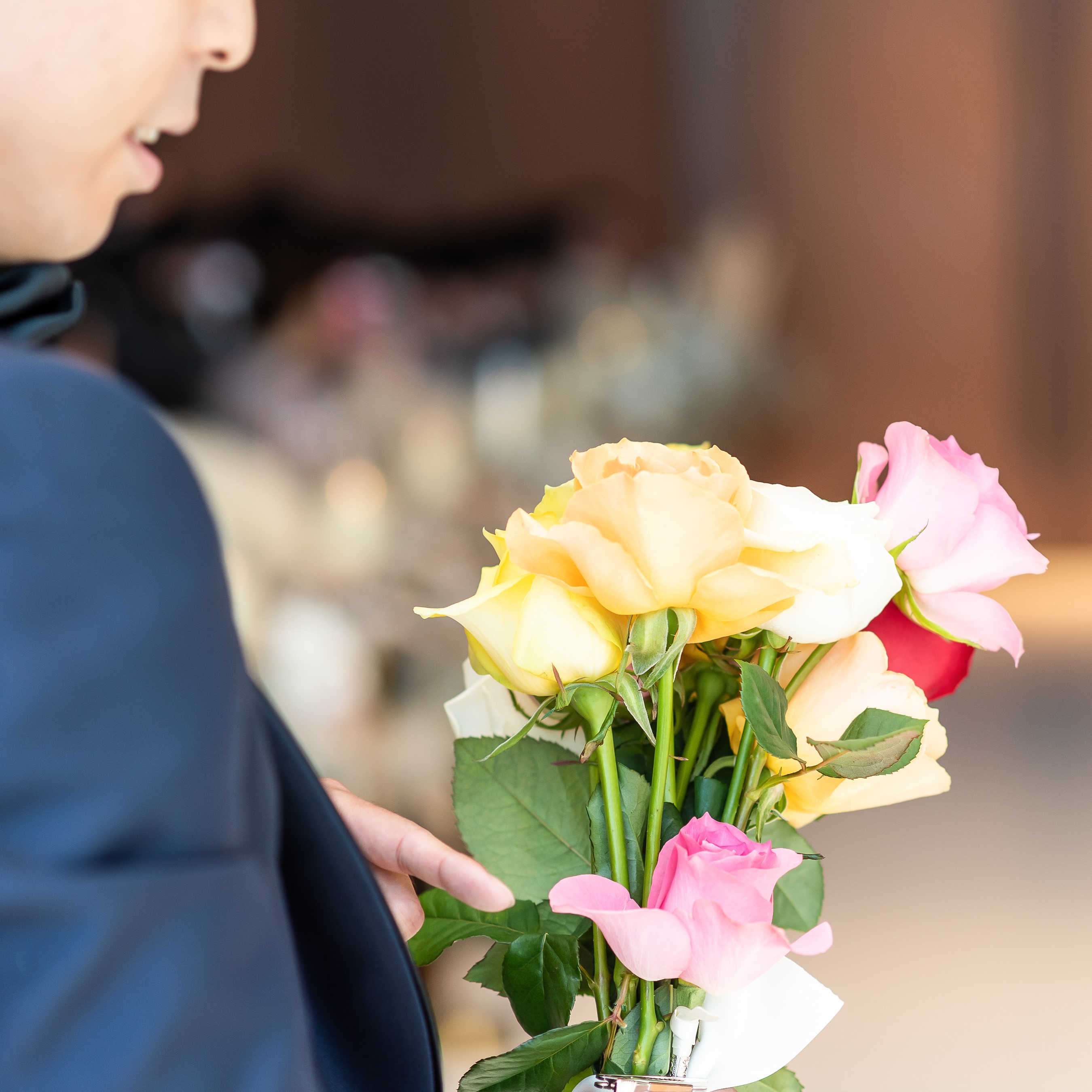 参列者の皆さんと結婚式を作りたいという気持ちから挙式のスタイルを人前式に決めていた私たちは、ダーズンローズセレモニーを行い、大切な方々から受け取ったバラで作ったブーケと共に素敵な時間を過ごす事ができました。