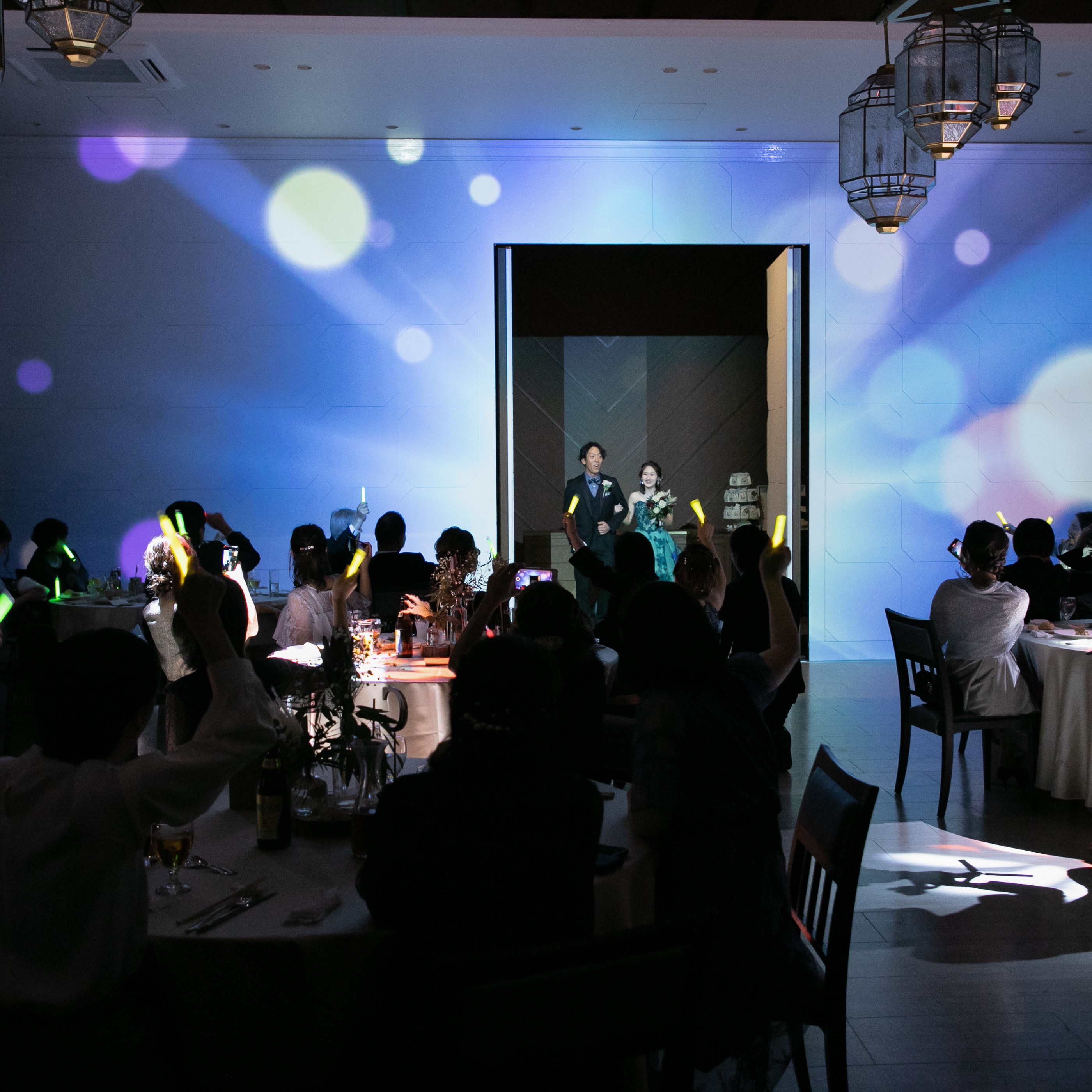 披露宴では、お色直し後の入場でプロジェクションマッピングがあり、