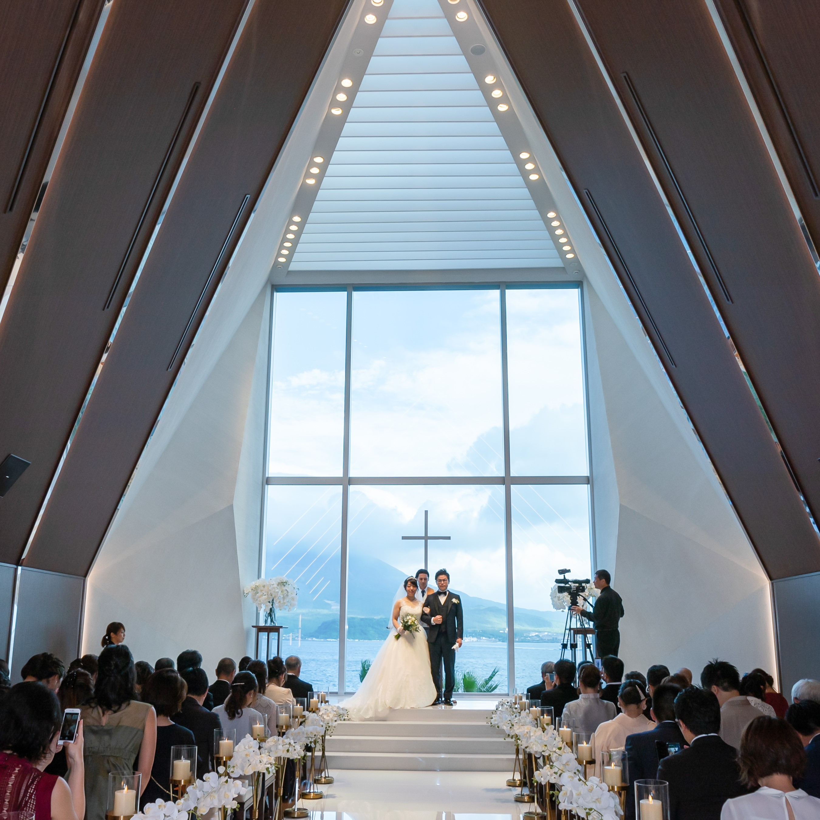 実際に見学してみると、式場の雰囲気や演出に魅了され、ゲストの方たちと笑顔で楽しんでいる風景が自然と思い浮かびました。また、県外の親戚や友人も多かったため、桜島がものすごく近くに見えるところや料理に地元のものを使っているところなど鹿児島の観光をしている感覚で喜んでもらえるのではとも思いました。