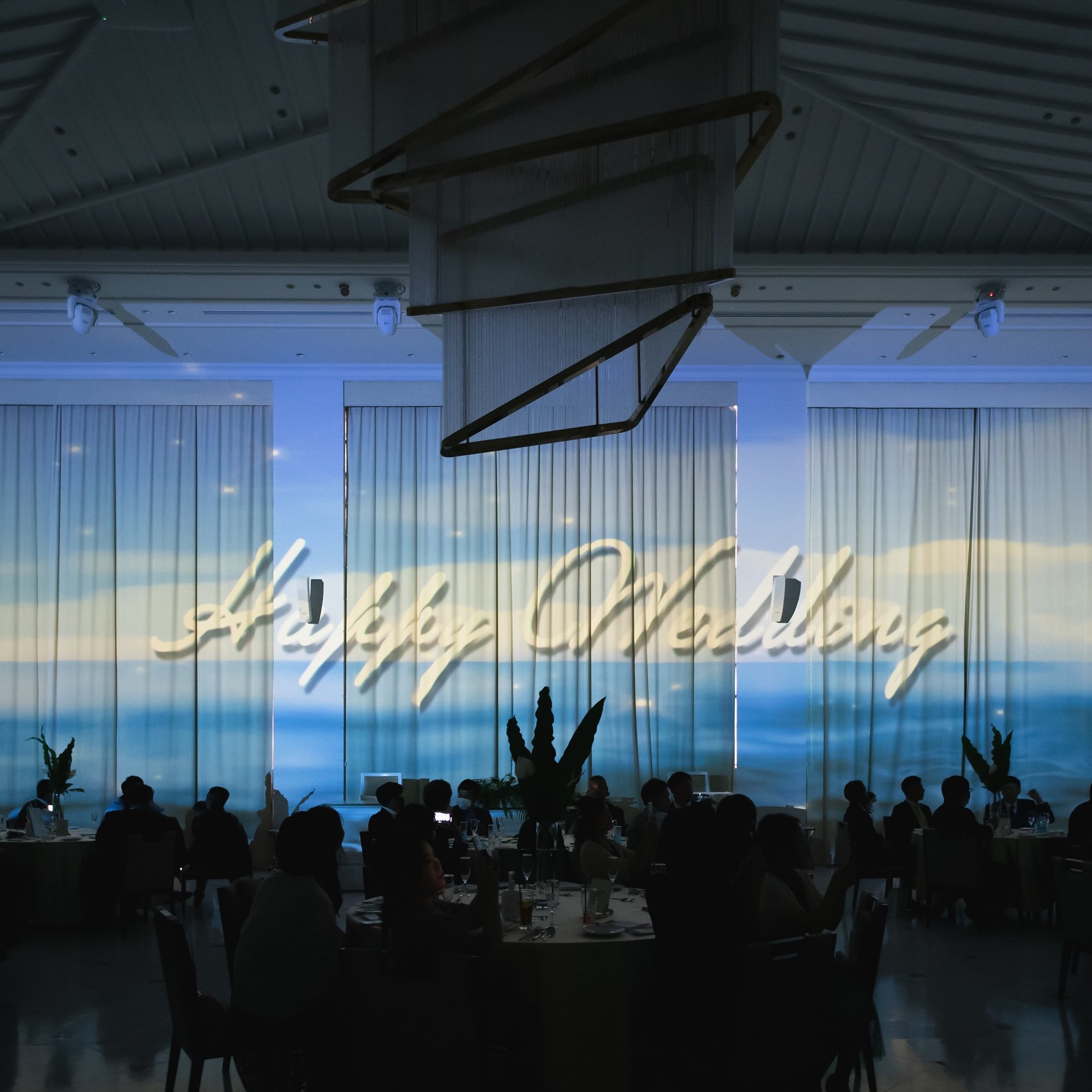 見学当日、私たちの想像以上の素敵な会場やロケーションで驚きを隠せませんでした。チャペルの向こうに広がる海と鹿児島のシンボル桜島がとても素敵で、地元が離島の私たちにとって大好きな絶景でした。また、外が暗くなるとガラスに映し出されるチャペルの照明が現想的でNight Weddingでも違った雰囲気で楽しめるのも1つのお気に入りポイントでした。チャペルの見学を終え、1番楽しみにしていた披露宴会場!扉が開き最初に目に入った大きなシャンデリアと私の理想としていた真っ白の大きな会場に「絶対ここで結婚式を挙げたい」と強く感じた瞬間でした。当日はプランナーさんが実際に演出を拝見させてくださり、2人で大盛り上がりでした。これほど素敵な空間と目の前に広がる海が見える式場で、大好きなゲストに囲まれて結婚式を挙げることが出来たら本当に幸せだよねと2人で強く感じ、それと同時にプランナーさんが一緒になって私たちの一生に一度の結婚式をワクワクしてくださっていた気持ちが本当に嬉しく、ベイスイートさんに決心しました。
