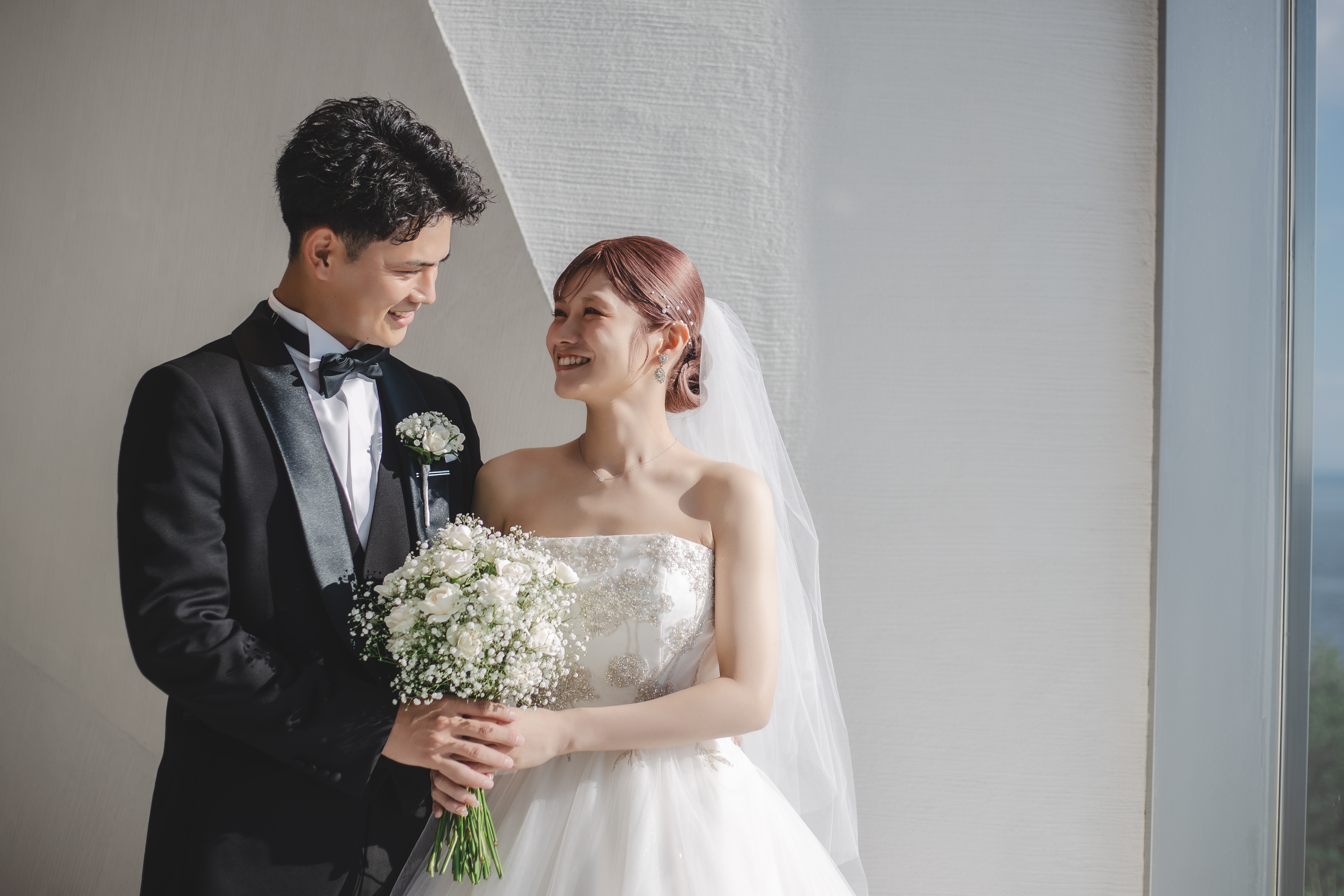 初めて式場にお越しいただいた際、ベイスイートから一望できる「桜島」の絶景を気に入ってくださったおふたり。