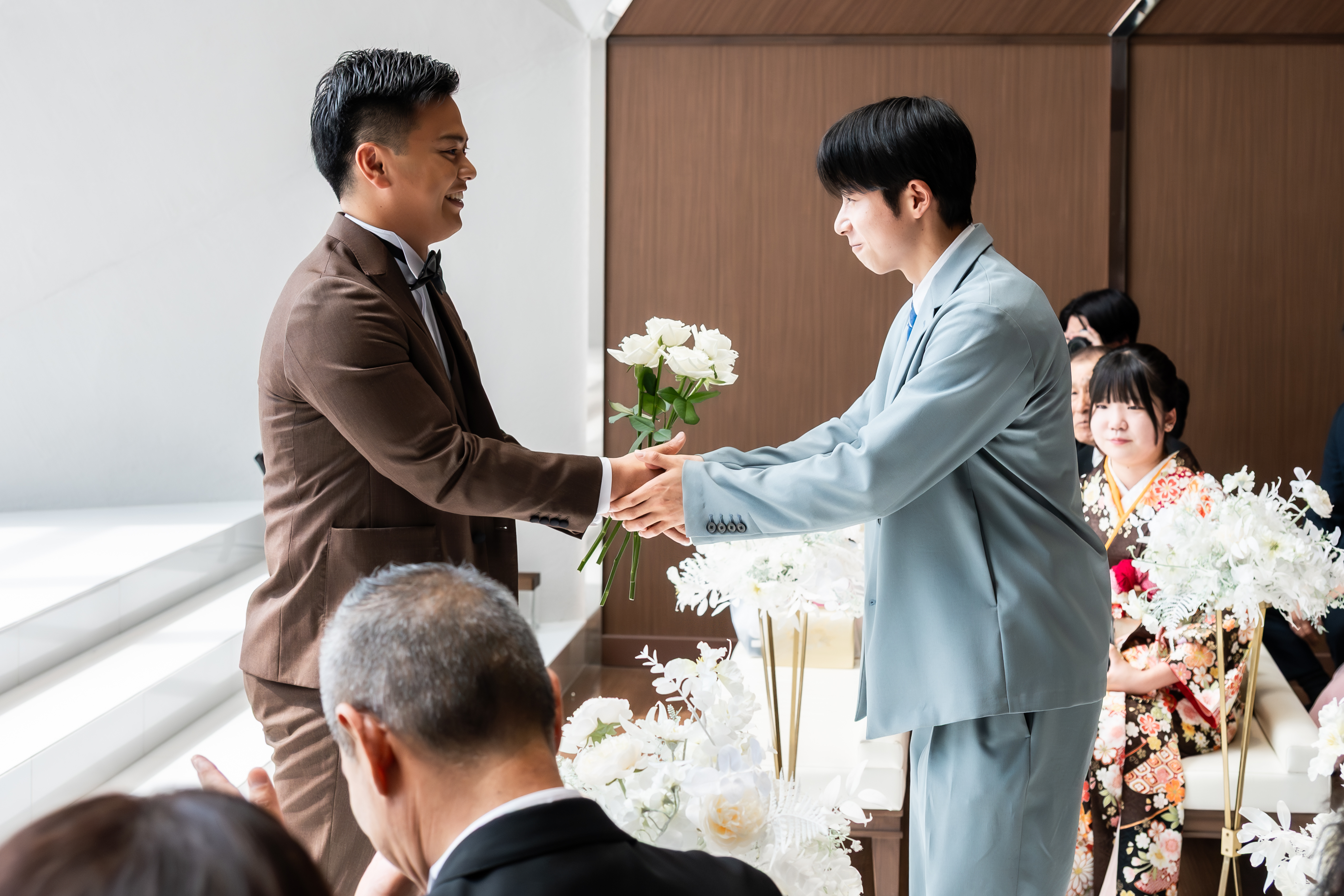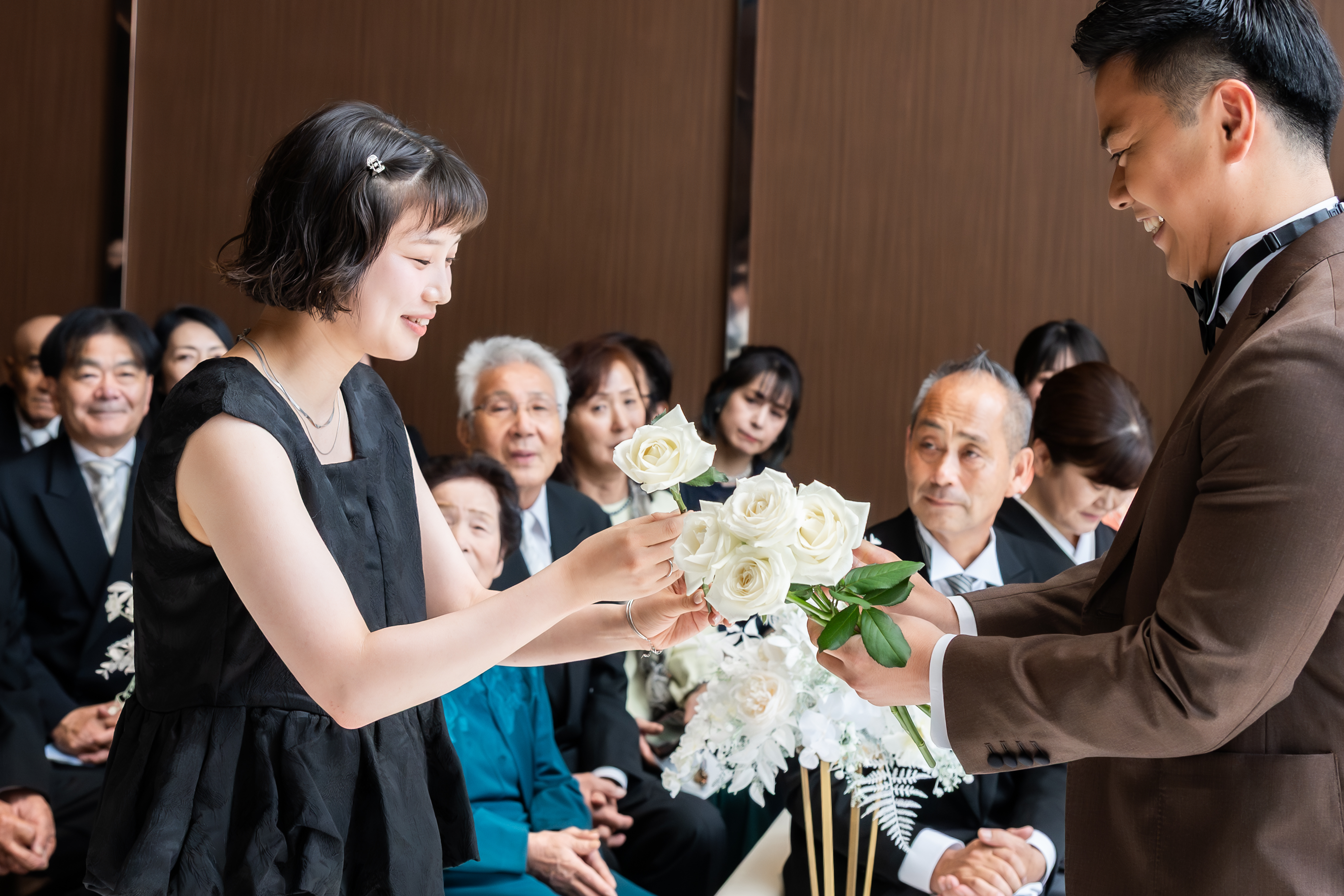 これまでの人生に携わってくださった方々からいただく1輪ごとのバラ、そしてその花束を新郎様の愛情と共に新婦様へ届ける瞬間、、いずれもアットホームでおふたりがたくさんの方に愛され祝福されていることを象徴する瞬間でした。