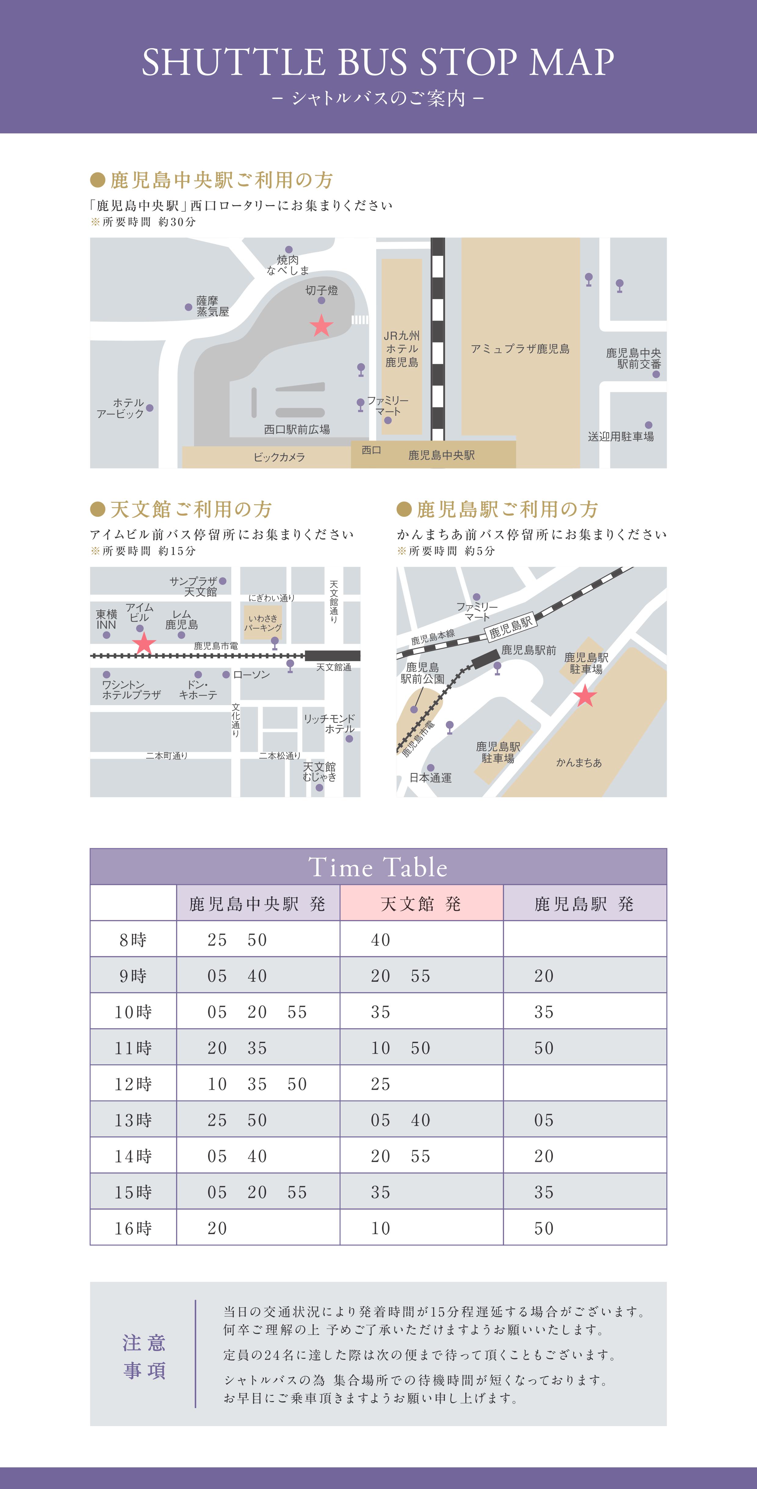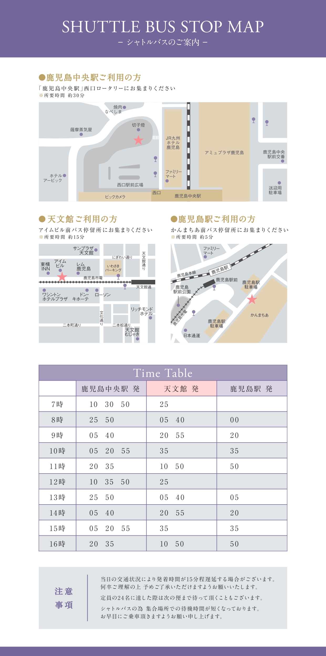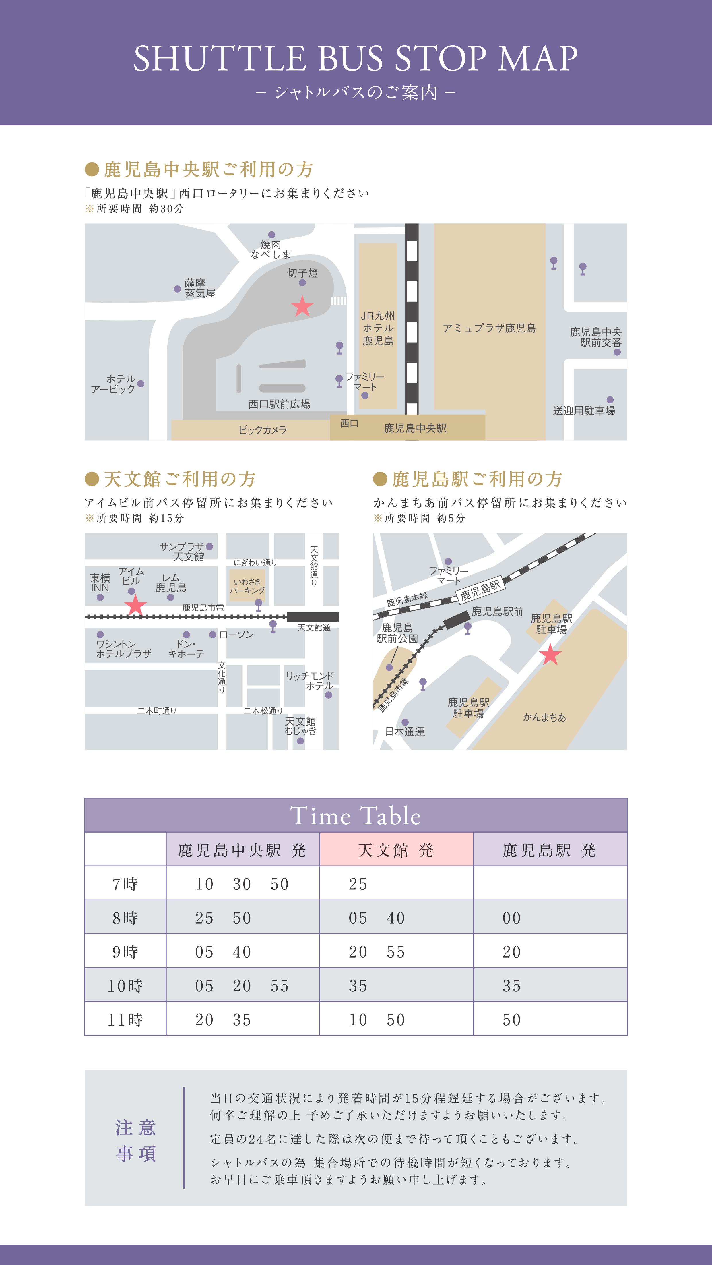 シャトルバスご利用の日程をカレンダーより選択していただくと、該当する時刻表が表示されます。