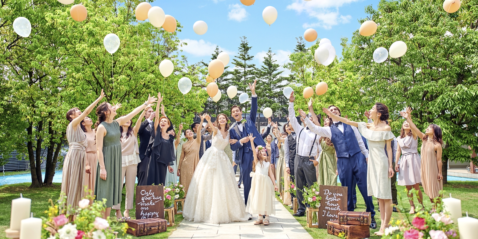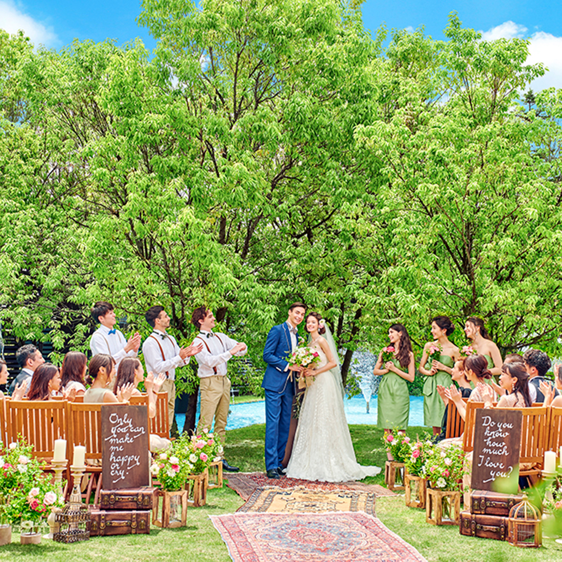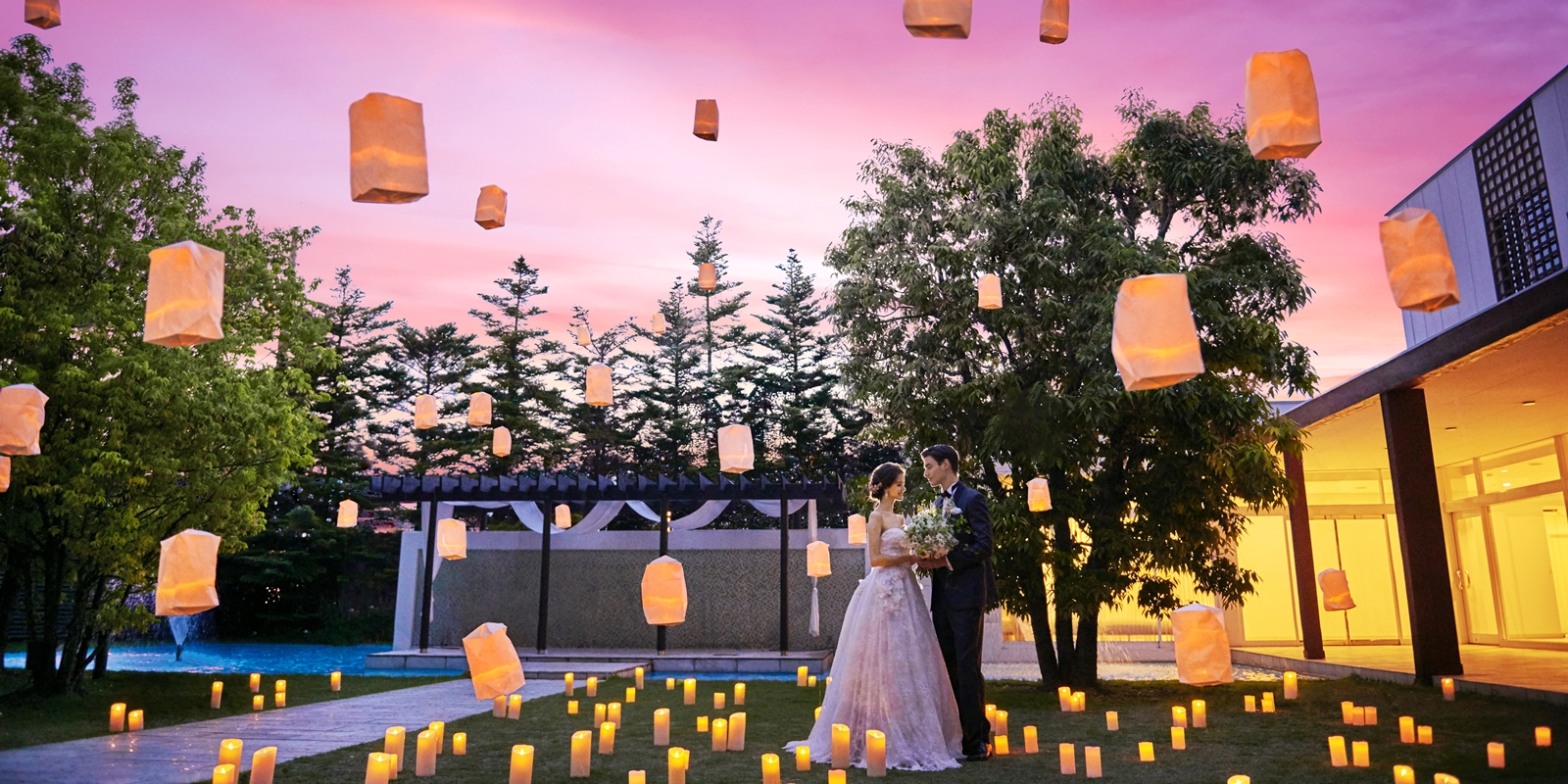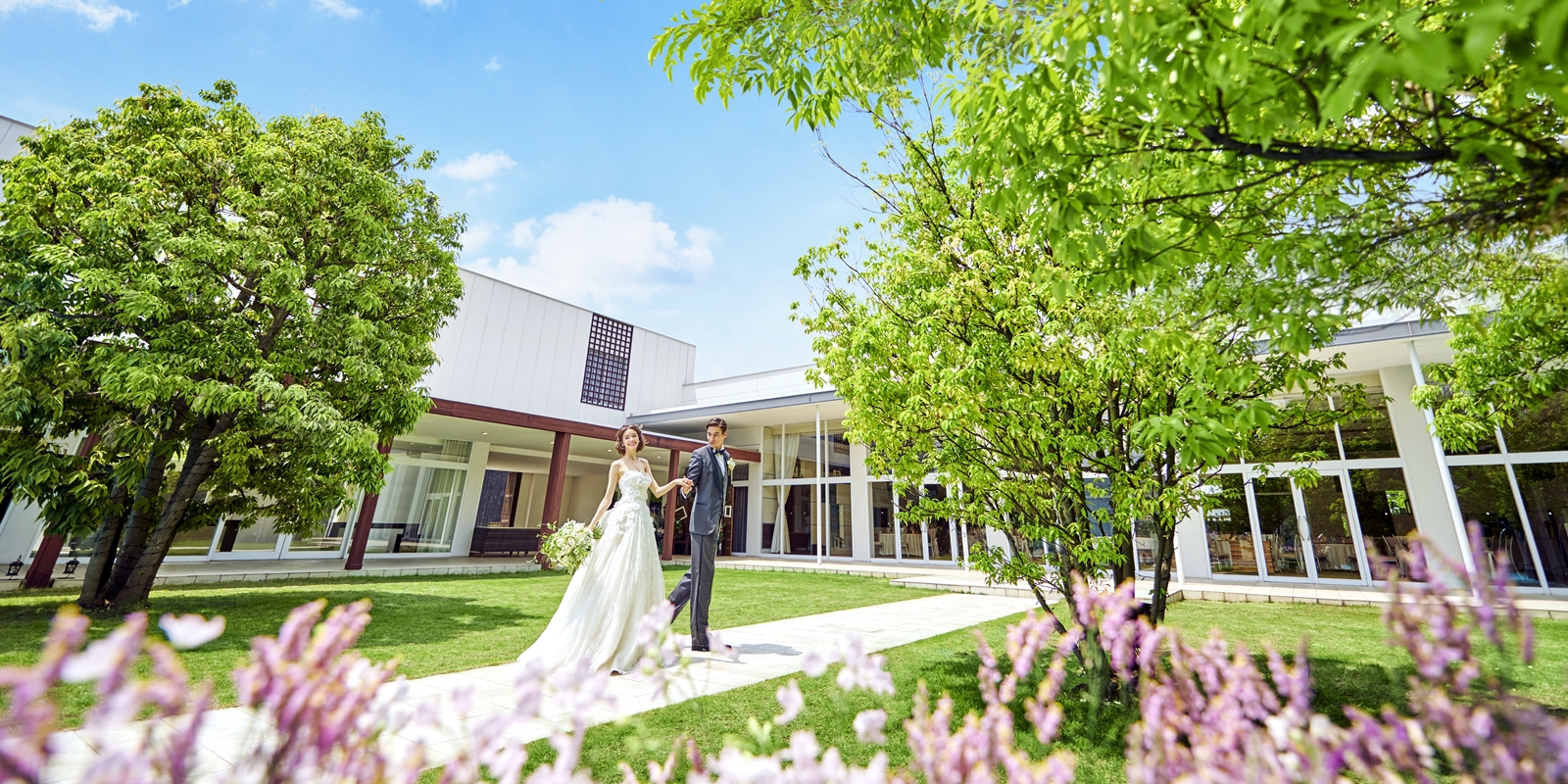 美しい緑と水のきらめきが彩るガーデンと、それを囲む上質な邸宅や独立型のチャペル。