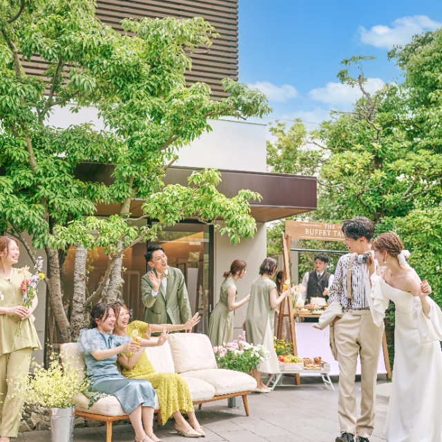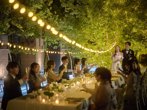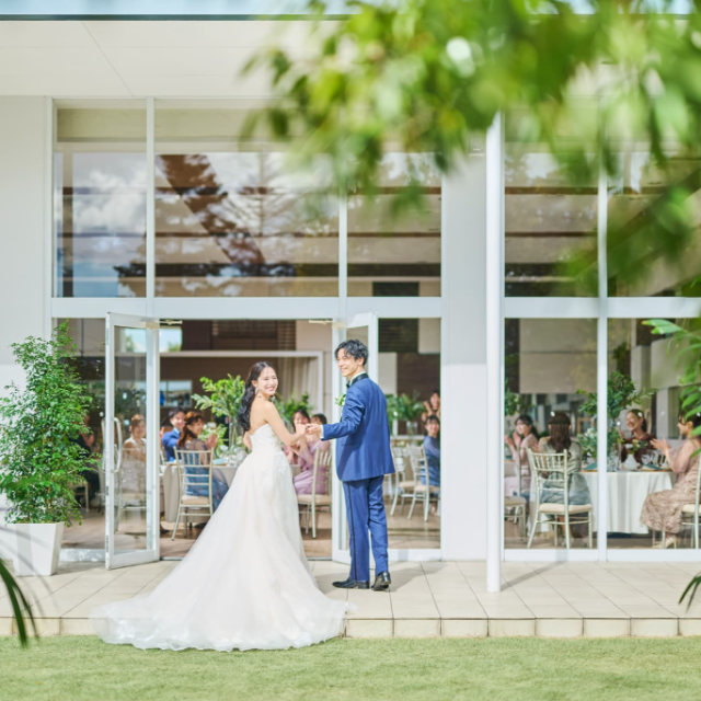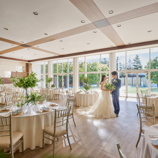 清々しい緑と水をたたえたアクアガーデンと、ナチュラルで開放的なバンケット。ブランレヴュー宇都宮アクアテラスでは、一面の大きな窓で繋がった屋内外の空間を自由に使い、おふたりらしさあふれる心地良いパーティーが叶えられます。