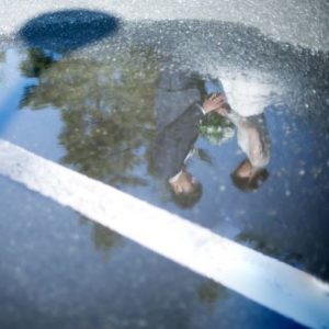 水溜まりに映るおふたりがなんとも幻想的な一枚です