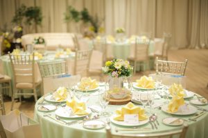 ブランレヴュー宇都宮アクアテラスではクロスやナフキン、テーブルのお花など