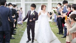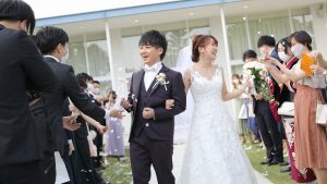 幸せのフラワーシャワーと共に降り注ぐゲストからの祝福の声に
