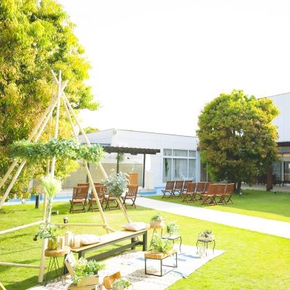 広がるガーデンで自然光と共に行うガーデン挙式